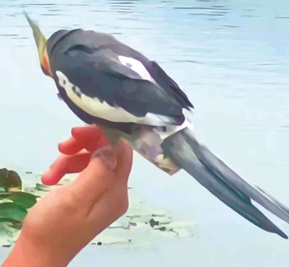 下山时,见一女子亭亭立于湖边,令人屏息的是,她微微抬起的手指上,竟停着一只鸟。