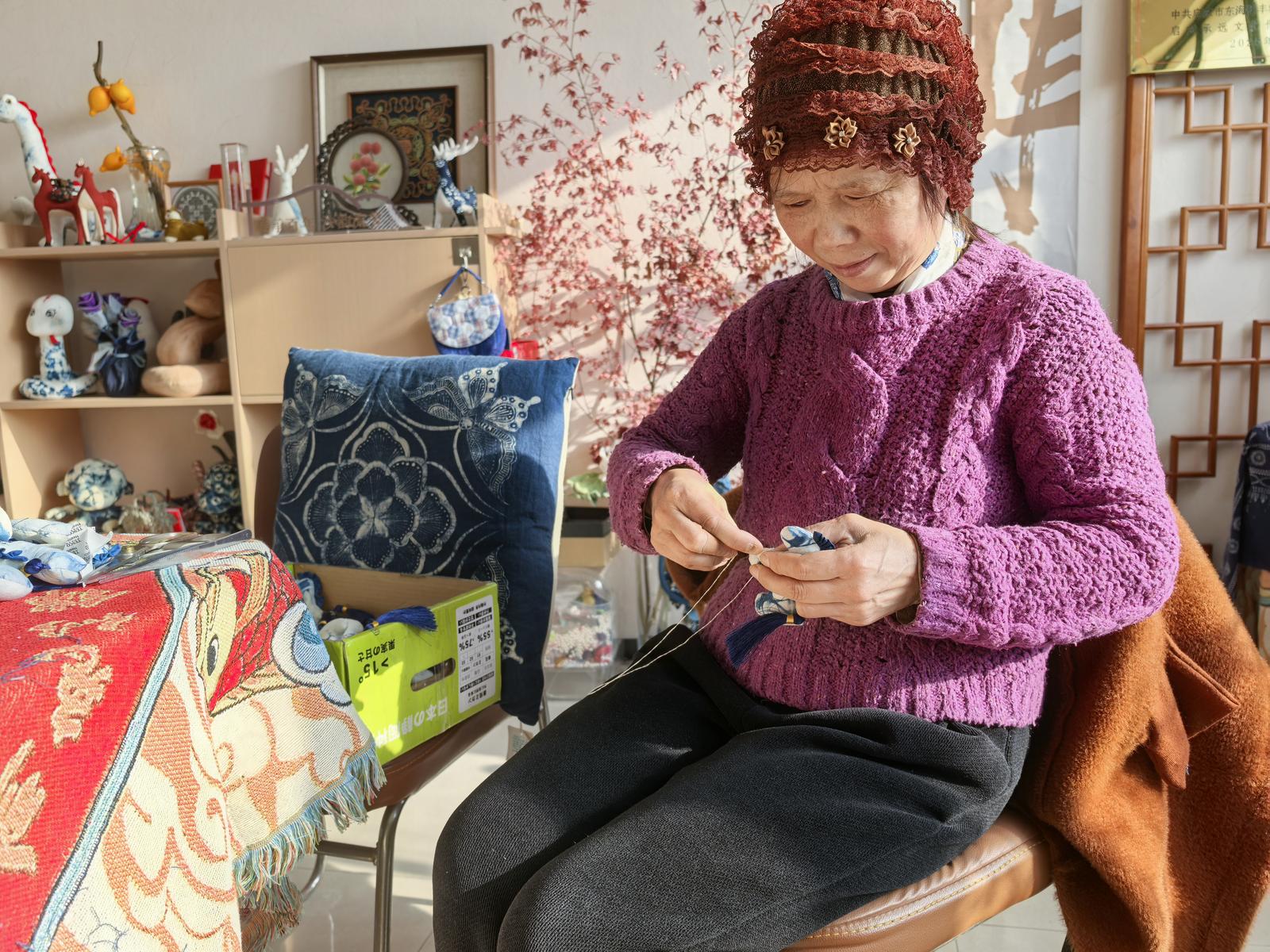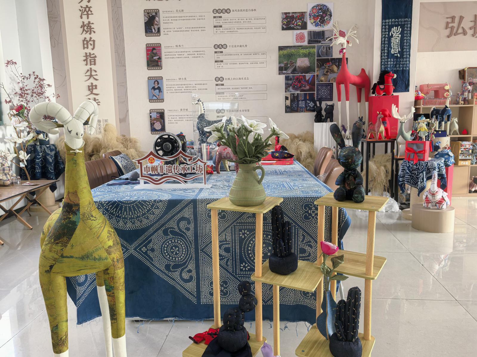 几年前,“章镇布艺”携手国家级非遗代表性传承人吴元新,将蓝印花布纳入文创设计,推出蓝印花布挂饰、土布笔记本、蓝印花布玩偶等潮流产品。