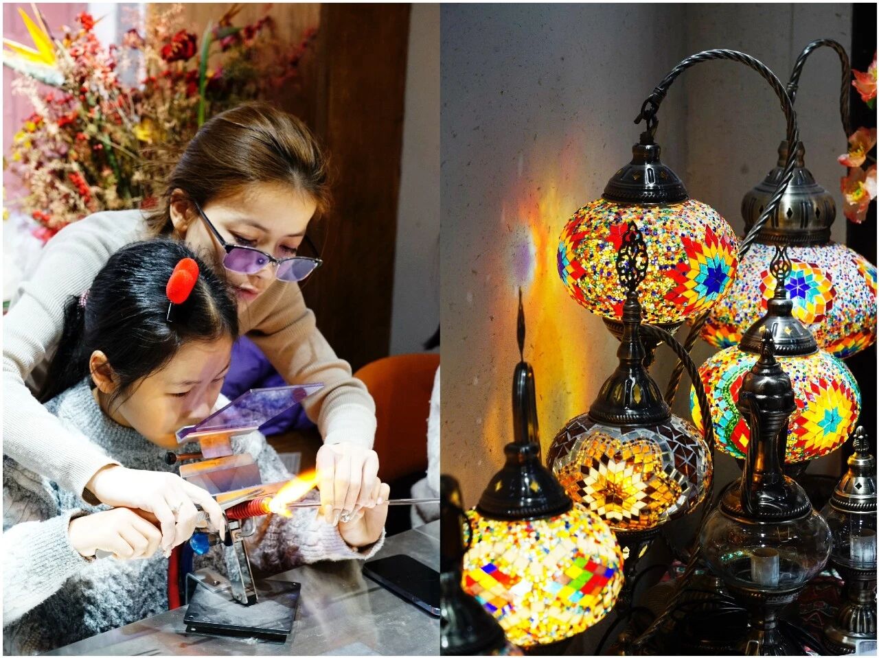 一切从零开始。玻璃器械无法搬运便重新购置,材料工具一应皆无便从头筹备。店铺虽只有宁波老店的三分之一,却被她精心规划,将灯工玻璃与马赛克灯作为核心项目,让小小店面藏满手作巧思。
