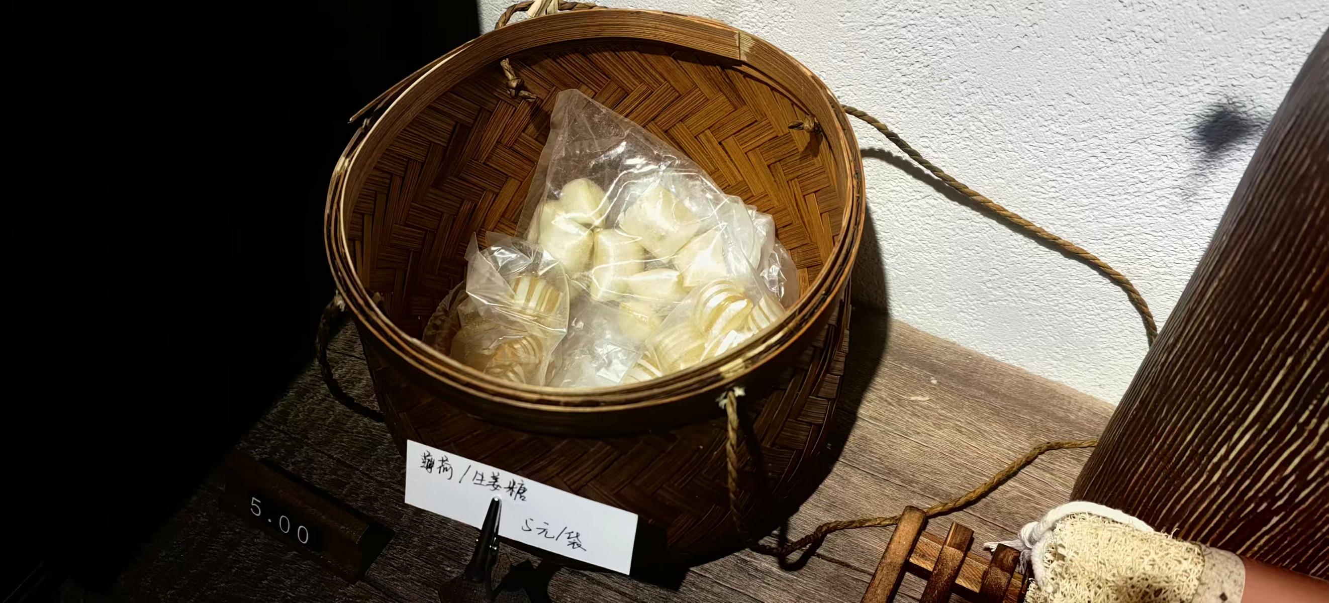 店里还有中草药饰品、线香、茶包,甚至薄荷糖和生姜糖。“小时候吃的糖,也是中草药,也是南通人的回忆。”除了这家店,她在唐闸北市还有一家葫芦店,同时运营着非遗活动公司。