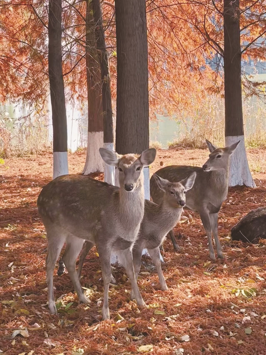 太湖湿地公园的北部,处处是清新柔软的草坪。遛娃的年轻父母专程来这里的“鹿岛庄园”投喂自由放养的野生梅花鹿。