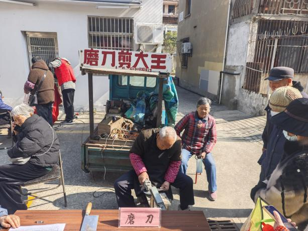 3月13日,启东市职工新村社区党总支开展“党旗引领践初心 雷锋精神伴我行”主题志愿服务活动,社区精心设置健康义诊、爱心理发、便民磨刀、反诈宣传等服务点位,精准对接居民需求,身穿红马甲的志愿者来自方方面面,医护人员免费为老年居民测量血压;理发师傅耐心为老人修剪头发;还有志愿者熟练地为居民打磨刀具……