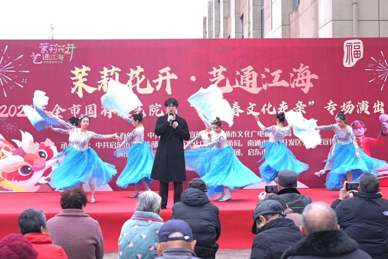 15日,随着海安市歌舞剧团专场文艺演出先后在通州区刘桥镇、通州湾团结社区上演,“茉莉花开·艺通江海”2026年全市国有文艺院团“贺新春文化走亲”专场演出圆满落幕。