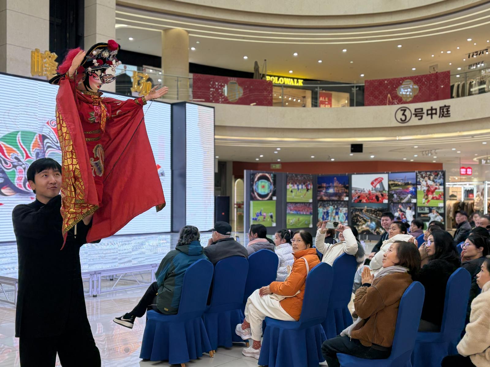 2月24日,如皋市木偶艺术团奔赴南通市区,先后走进南通文峰广场、印象城两大商圈,带来《扇韵》《嫦娥舒袖》《袖舞偶韵》《女驸马》《变脸》等经典木偶表演。演出穿插趣味问答环节。“如皋杖头木偶戏起源于什么时候?”“大家知道如皋的美食、景点有哪些?”“今天来崇川串门,能不能给我推荐几个崇川的旅游打卡点?”……一个个问题紧扣本土文化与文旅资源,唤起市民的家乡认同感。