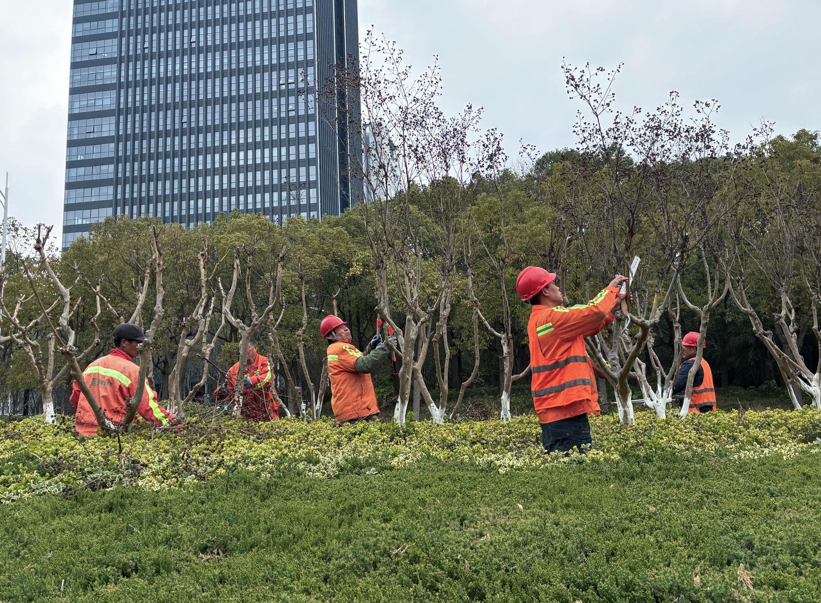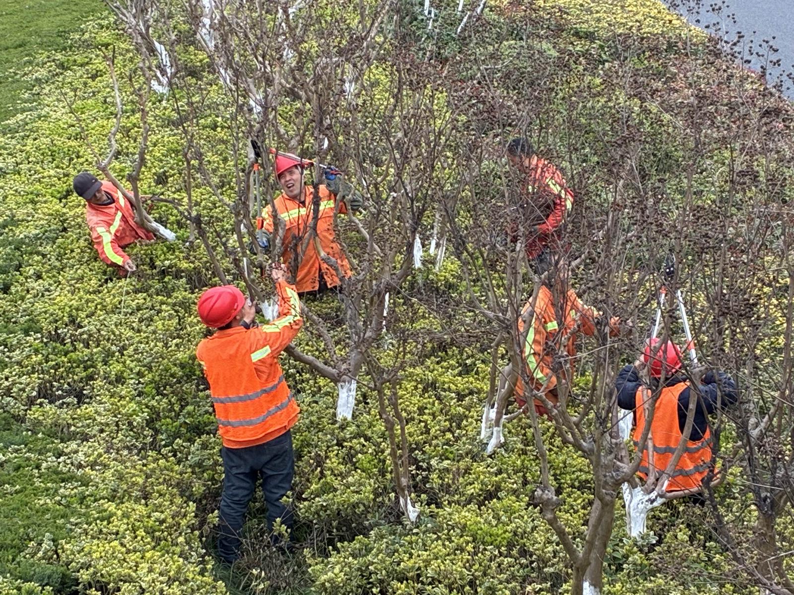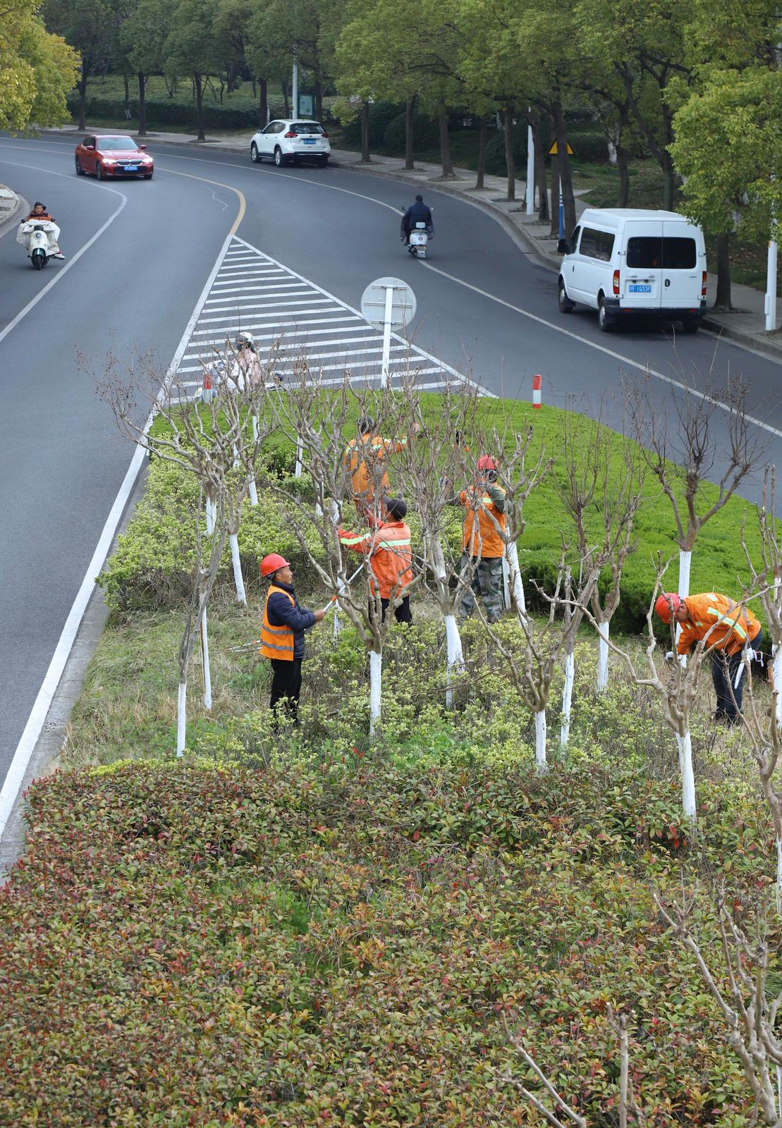 “梳妆”好时节!园林部门精细养护绿化带为城市“美颜”