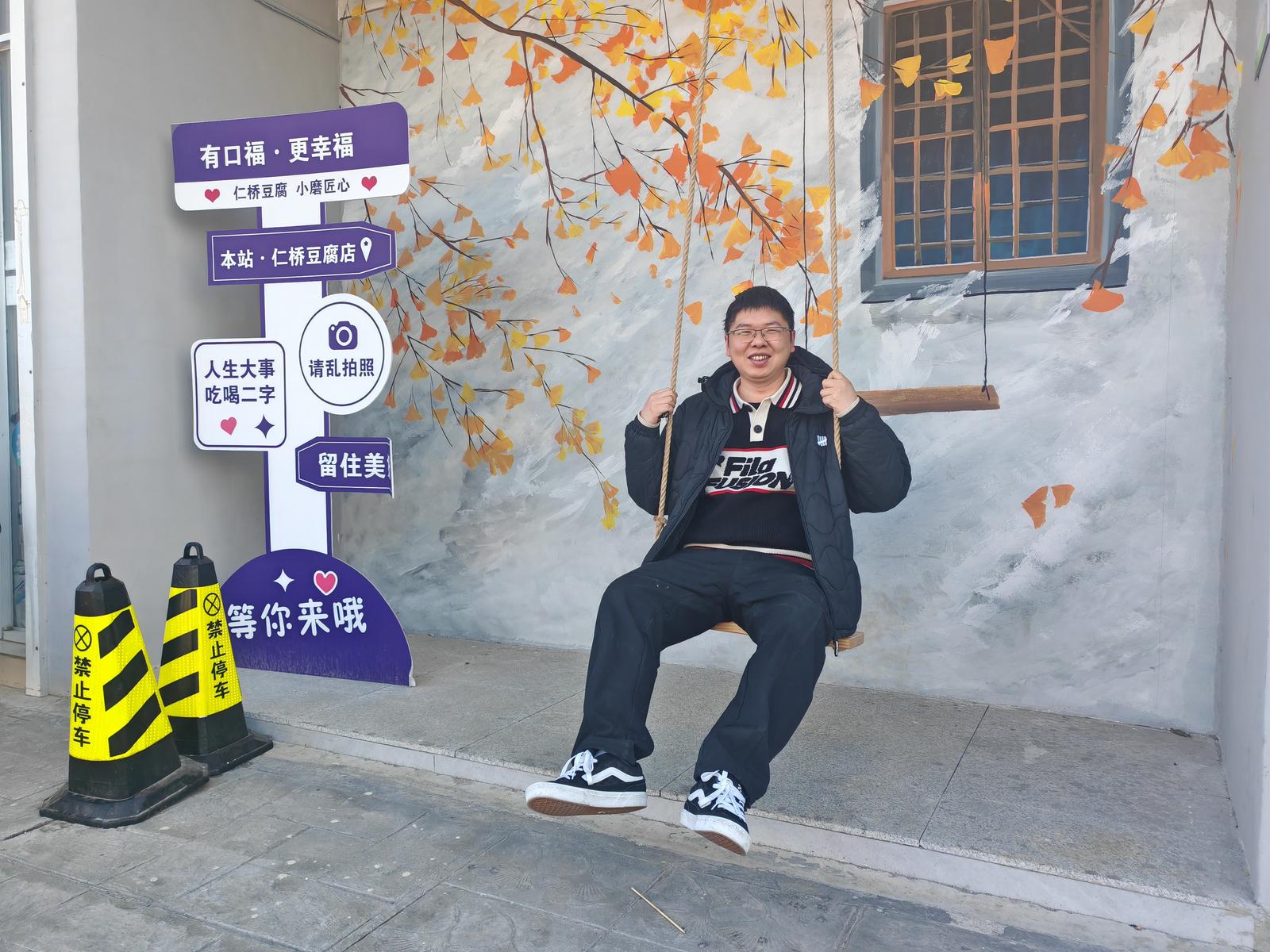 这个展示馆还有一个名称,叫温暖小屋咖啡店,经营咖啡、奶茶、豆腐和豆花,还提供豆腐礼盒,门外走廊下还有一个秋千,吸引了不少年轻人前来打卡。