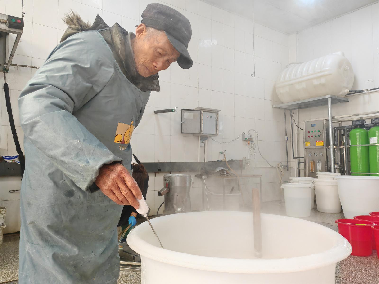 “六七岁时就跟着爷爷和父亲推磨。”86岁的曹为国他回忆,那时早上三四点就得起来,磨浆、过滤……