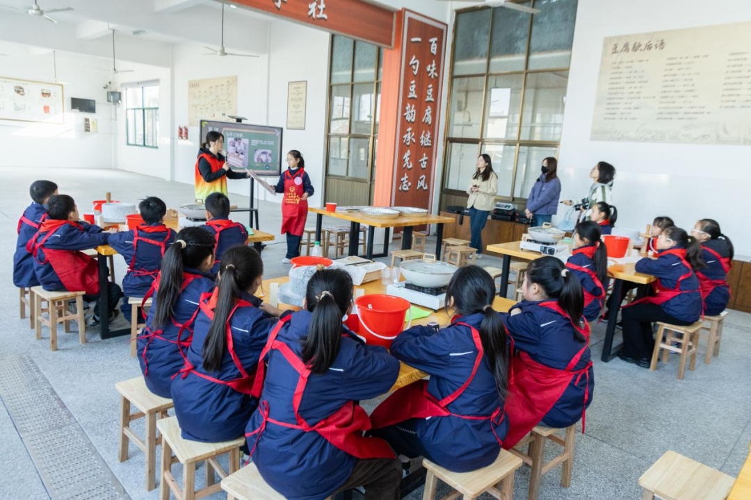 祖师庙村是“仁桥豆腐”的发源地,100年前就有七八家专门制作豆腐的作坊。去年9月,村里投资20万元,成立“清豆物语”强村公司,把闲置的原仁桥小学食堂改造成生产基地,以及配套成立豆腐研学社等。