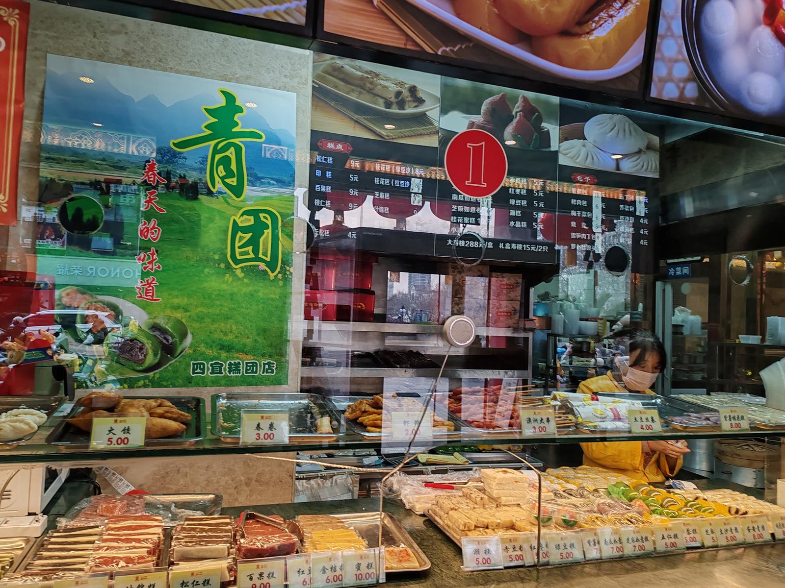 市区八仙城步行街内的“杂粮饼铺”点心店内,身装白色工作服的当班小姑娘忙个不停。她说,开春以来,店里的各式青团特别好卖,顾客这阵子大多都是冲着青团而来。