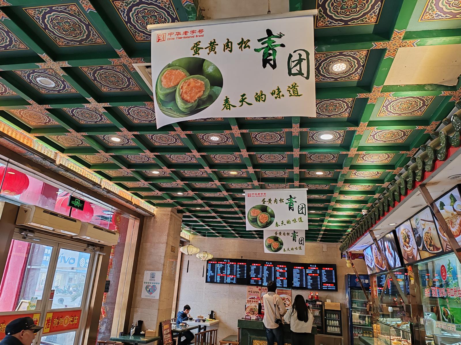 作为非遗产品和传统时令点心,四宜糕团店的青团从未令南通人失望,上汁的青色来自野菜汁液如艾蒿等,保留自然清香;制作上采用“湿磨、细筛、双高蒸制、锁水”传统技艺,使青团具有“糯、软、松、细”独特口感,再加上内馅多为清甜豆沙,搭配咸蛋黄与肉松组合,甜咸交融、沙润不腻,一口上头、春到舌尖。