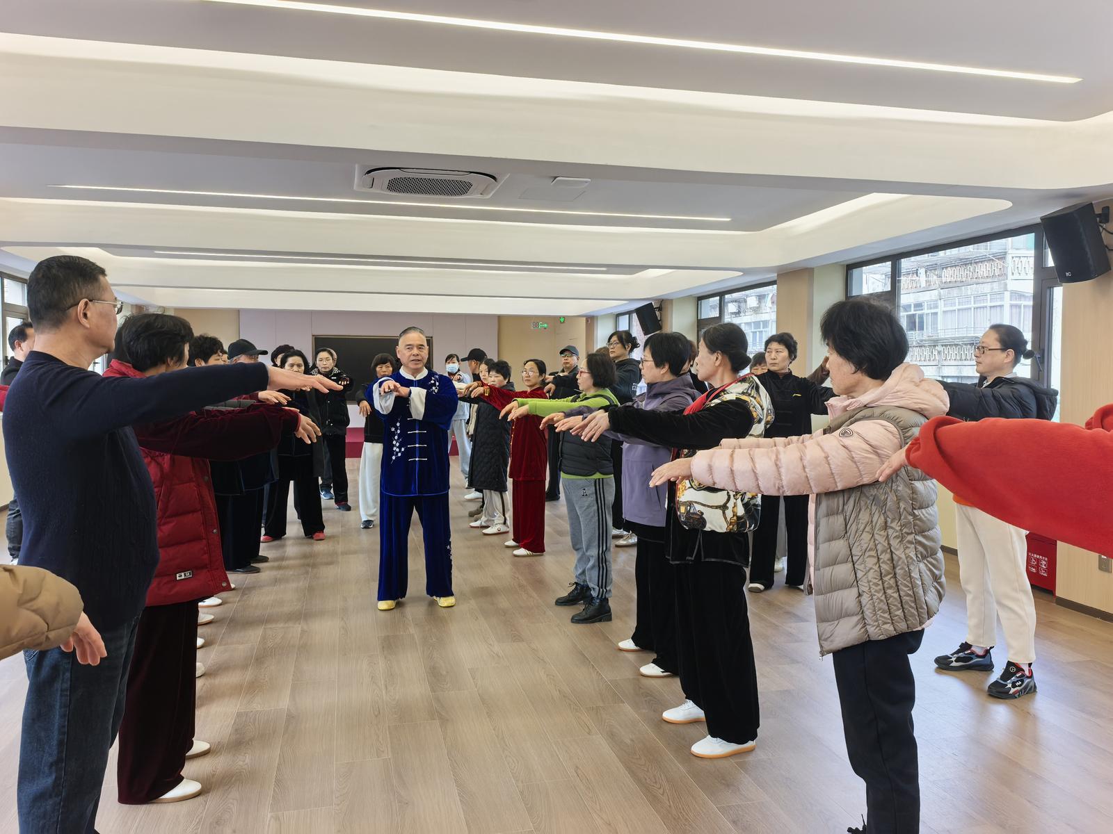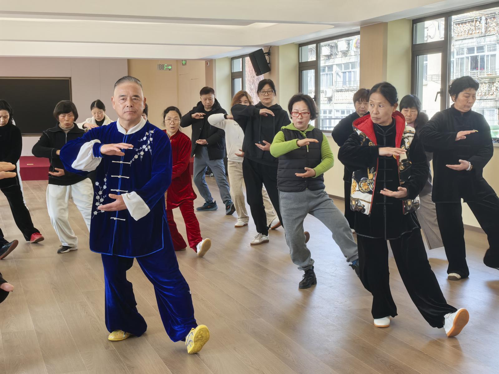 “大家注意,太极拳起势要身正腰松、沉肩坠肘,下蹲高度以自身舒适为宜,唯有全身心放松,才能把后续动作练到位、练出彩。”太极拳课堂上,授课老师陈汉忠声音洪亮、底气十足,示范动作标准规范、刚柔并济,尽显专业功底。学员们目不转睛、凝神模仿,每一个动作都力求精准;下课间隙,大家纷纷围拢在老师身边,主动请教动作细节,你一言我一语的交流声,让课堂氛围愈发热烈。