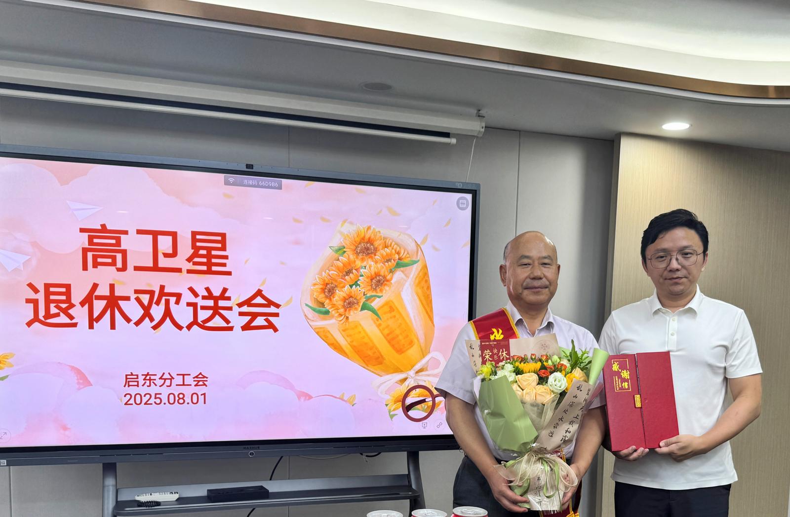 荣光永驻,铭刻奋斗印记。精心策划举办荣休座谈会,公司领导、部门同事与新老员工齐聚一堂,通过温情短片回顾、共事故事分享、退休感言等环节,致敬退休员工数十年如一日的坚守与付出。会上,由南通移动工会特别设计定制的荣休纪念币,镌刻移动标志与专属寄语,以金色徽章铭刻奋斗足迹,传递“一朝移动人,一生移动情”的深厚敬意。同时,工会为每位退休员工送上鲜花与暖心纪念品,让仪式感与归属感在温情祝福中交融。