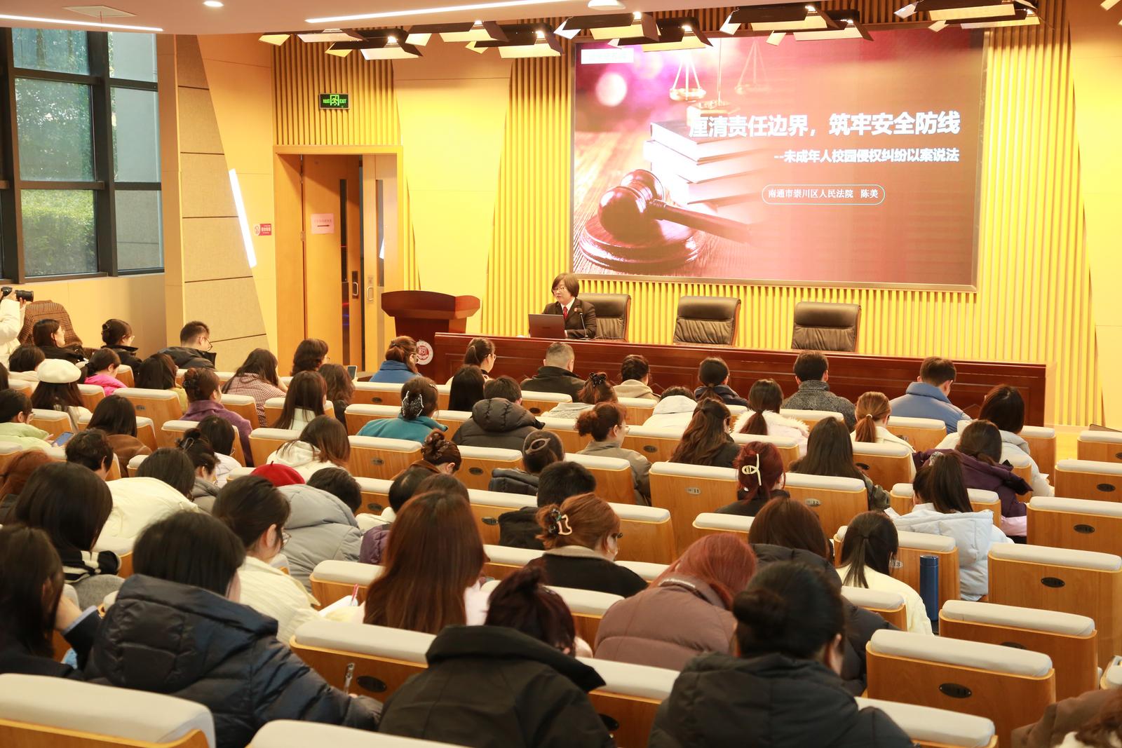 走出审判庭,南通港法庭的女法官们还有另一重身份——学校法治副校长,陈美便是其中的代表。作为通师二附的法治副校长,她化身孩子们眼中“会讲法律故事的法官姐姐”,将法治教育的种子播撒在童心之间。“法治教育对孩子而言,是驱散成长迷雾的明灯,我愿做擦亮星星的人,让每个孩子都能在法治的阳光下茁壮成长。”陈美说。