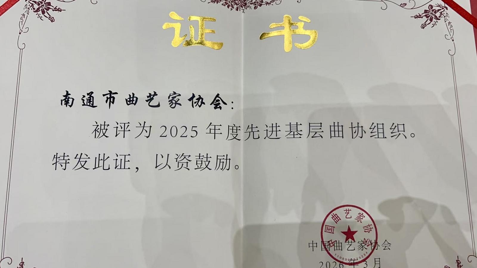 南通市曲艺家协会获评2025年度全国“先进基层曲协组织”