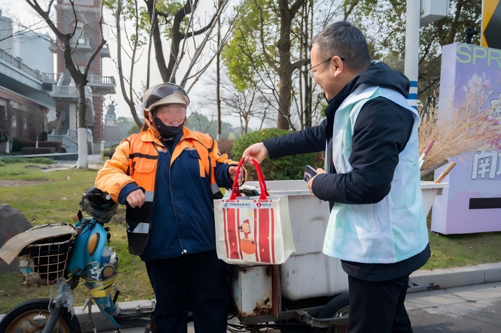 活动的温情一幕,是向辛勤工作在一线的环卫工人送上关怀。分行员工将精心准备的“邮爱公益包裹”送到“城市美容师”们的手中,并致以诚挚的问候与感谢。这一举动不仅是对基层劳动者的尊重与致敬,更是该行服务大众、回报社会的企业文化的具体体现,传递了金融机构的民生温度。