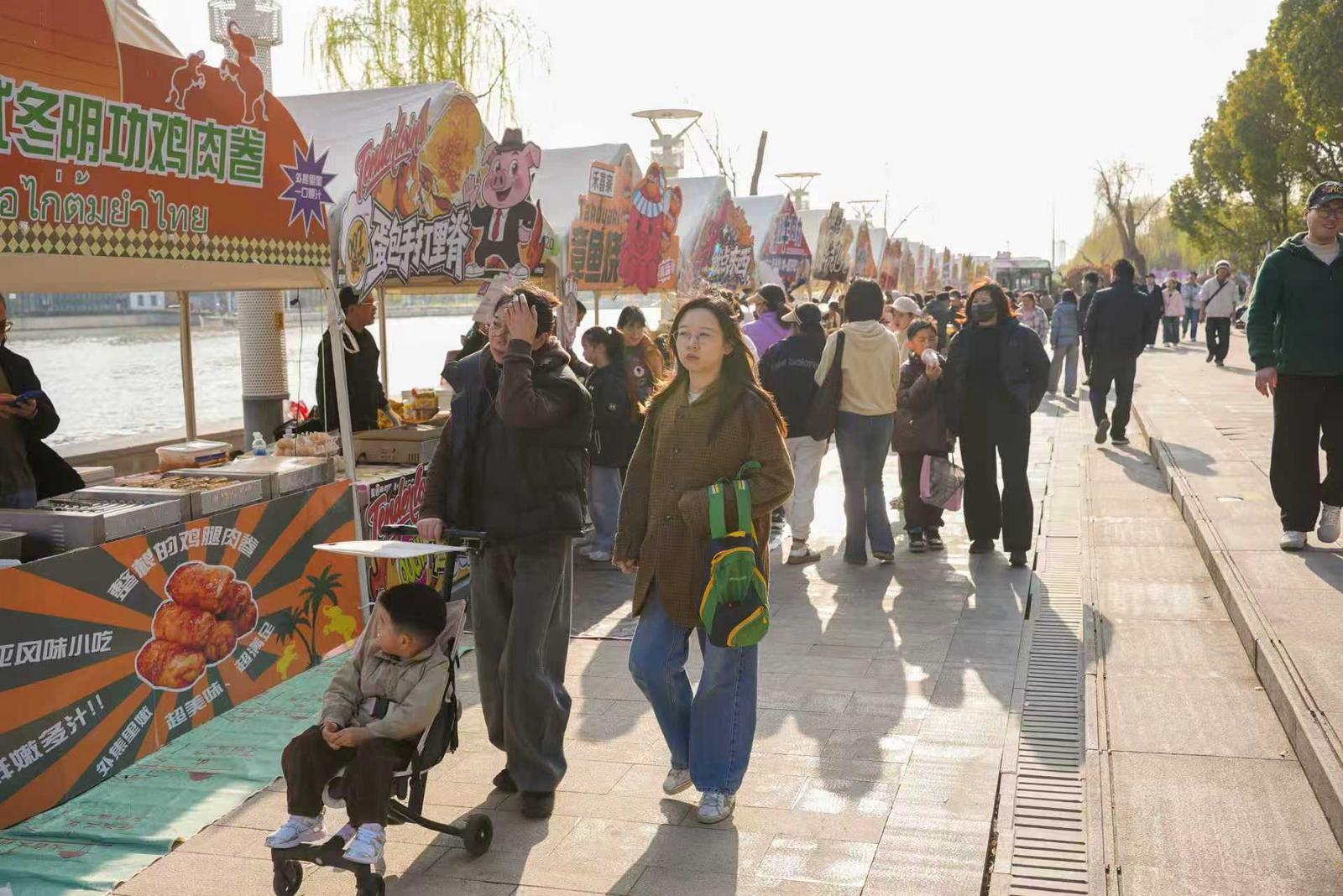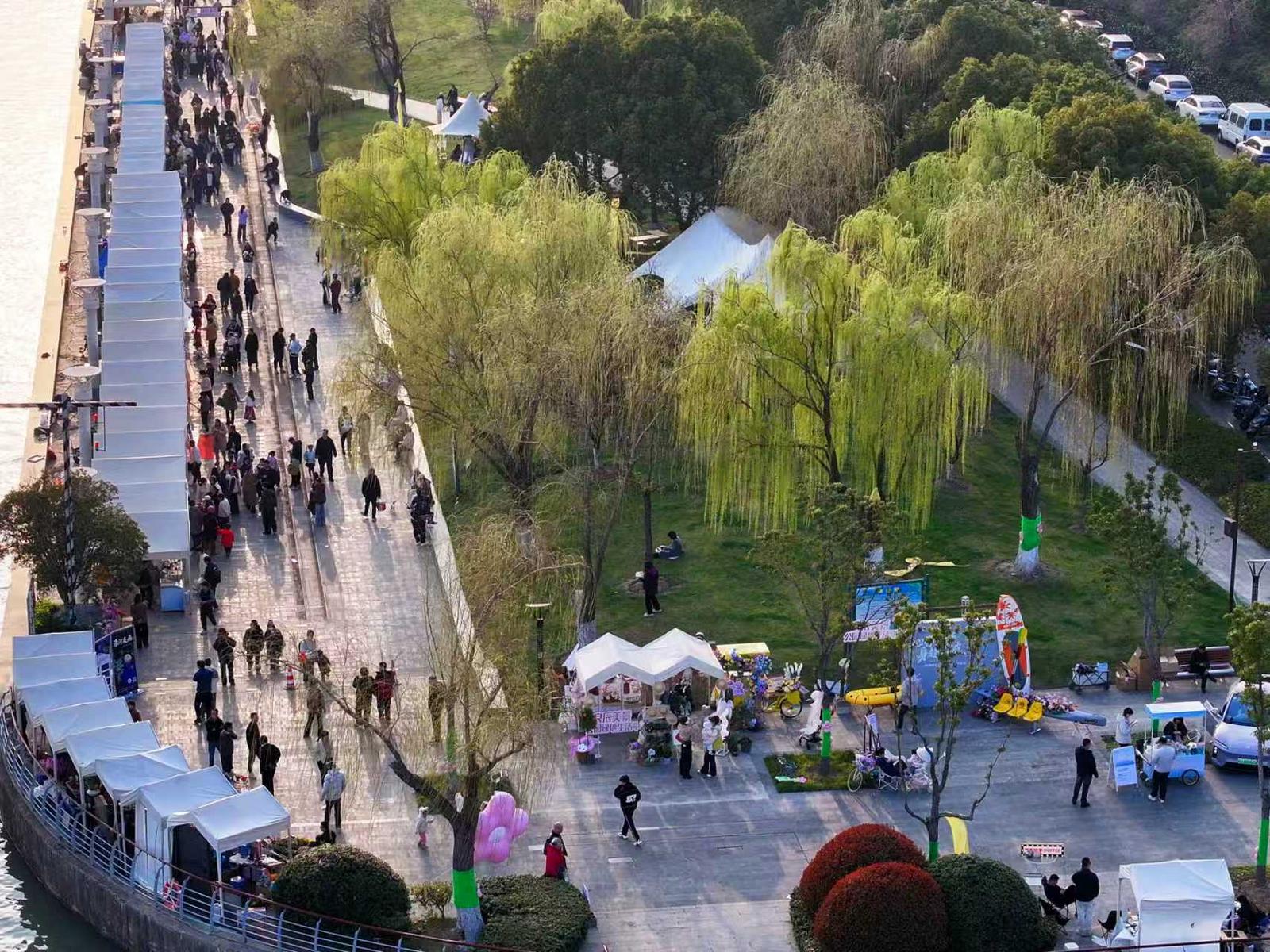 步入花海主题展区,樱花含苞待放,碧桃摇曳生姿,漫步花间步道,一步一景皆是春日画卷,随手定格便是专属于通城的春日限定美景,成为市民游客打卡拍照的首选之地。“每年都来运河边赏樱,今年格外有氛围,露营、市集一应俱全,拍照氛围感拉满,在家门口就能拥抱最美春光。”市民陆瑞笑着说。