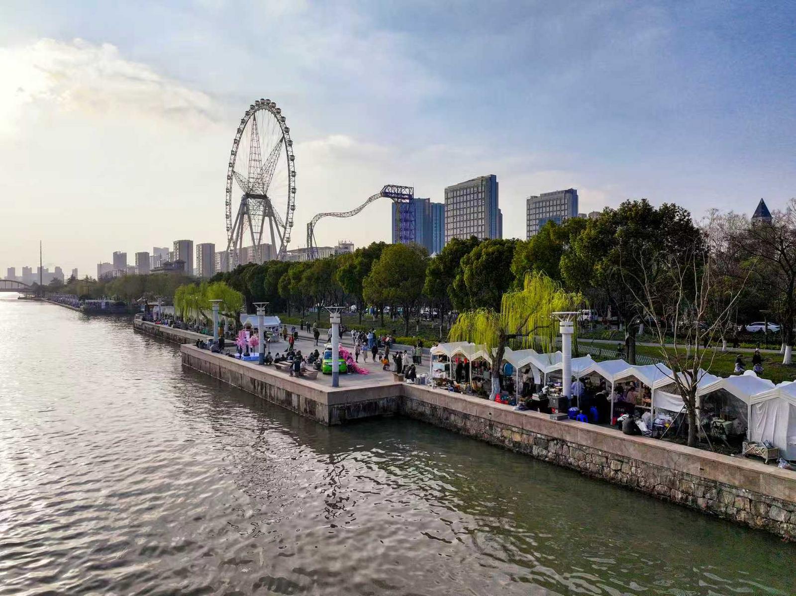 生活季选址通吕运河北侧绿廊、北城大桥畔这片春日网红赏樱地,自然景致与生活趣味完美融合,精心打造花海主题展区、园艺科普区、露营区、潮流市集区等特色区域,近百个特色市集摊位依河而设、错落排布,让昔日静谧的河畔绿廊,变身兼具颜值与活力的文艺生活聚集地。