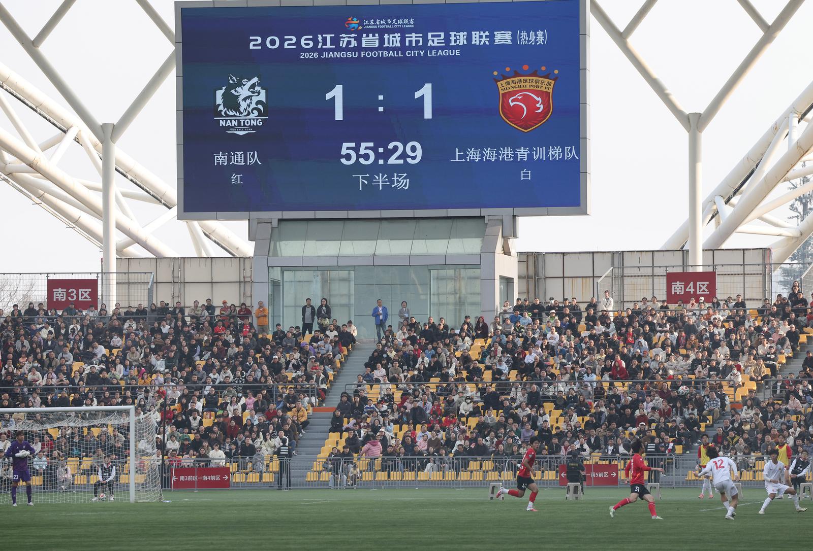 2026年3月22日下午,2026江苏省城市足球联赛(热身赛)南通队VS上海海港青训梯队的比赛在南通体育会展中心体育场举行。