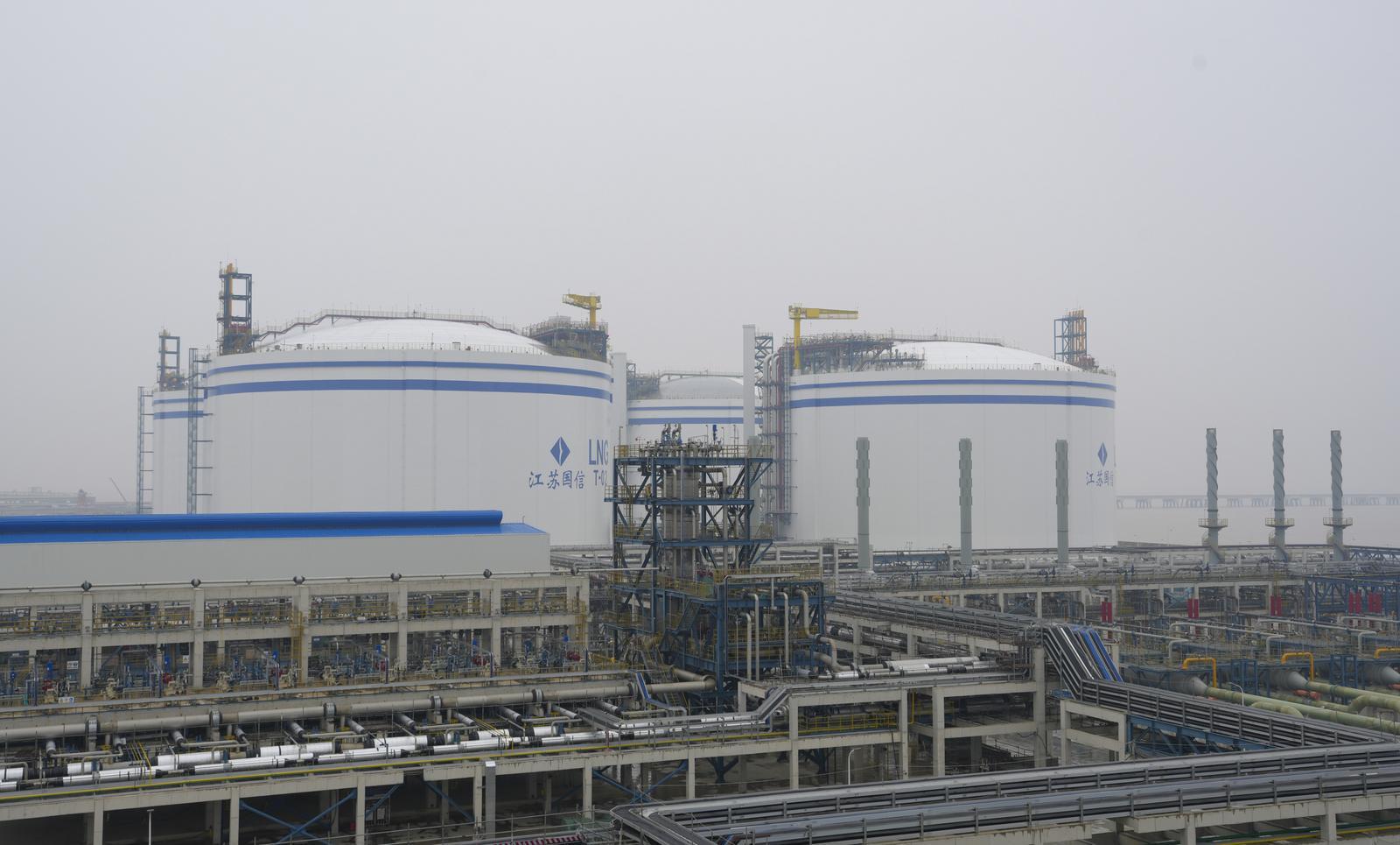 阳光岛是一座能源岛。从国信LNG接收站向东望去,岛上一片更为密集的“LNG罐区”呈现眼前——中石油江苏、协鑫汇东两座LNG接收站,14年前起就已陆续入列我国西气东输、北气南下、海气登陆能源保供体系。