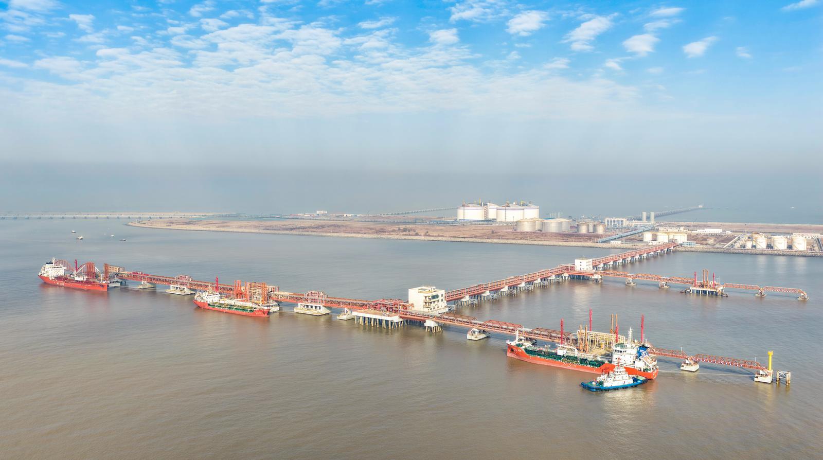 三月的黄海之滨,下的是春雨,起的是春风,涌的是春潮。如东县委大院向东,正是大海的方向。洋口大道,此行“出海”的必经之路,尽头便是与其无缝对接的黄海大桥,向海延伸约10千米,桥的终点便是此行第一站——我国首座外海无遮拦人工岛、面积约3平方公里的阳光岛。登岛尚有一段距离,4座高四五十米的巨型储罐映入眼帘,罐身字迹醒目异常——江苏国信LNG。