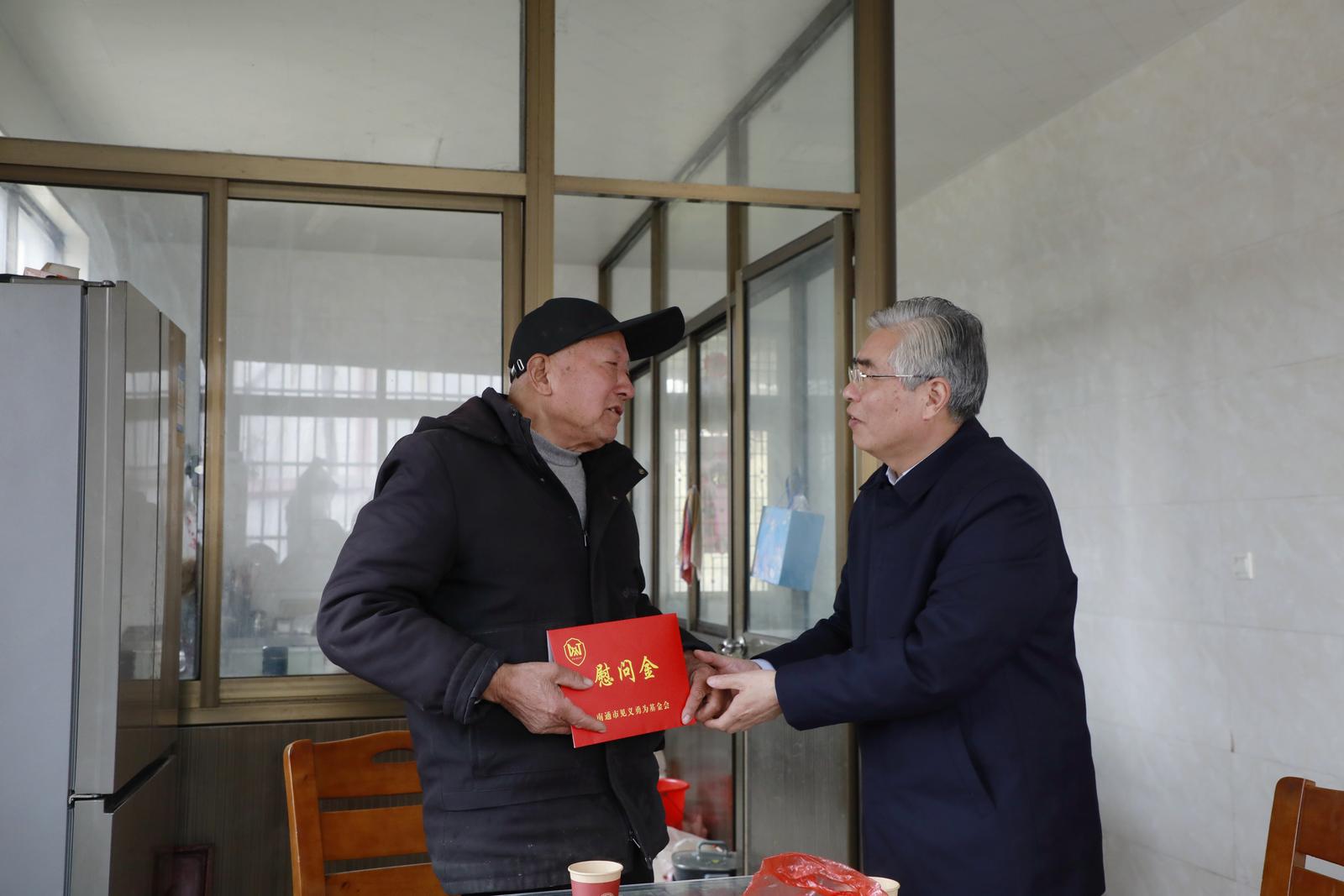在如皋绿润名都小区,市见义勇为基金会理事长金元一行专程看望慰问了见义勇为牺牲人员丁鑫军的家属申倩倩。“我现在生活都挺好的,公安局、派出所平时对我很关心,去年儿子考上大学,基金会还专程给我们送来了助学金,解决了家里的燃眉之急,真的特别感谢大家的惦记和照顾。”申倩倩动情地说。