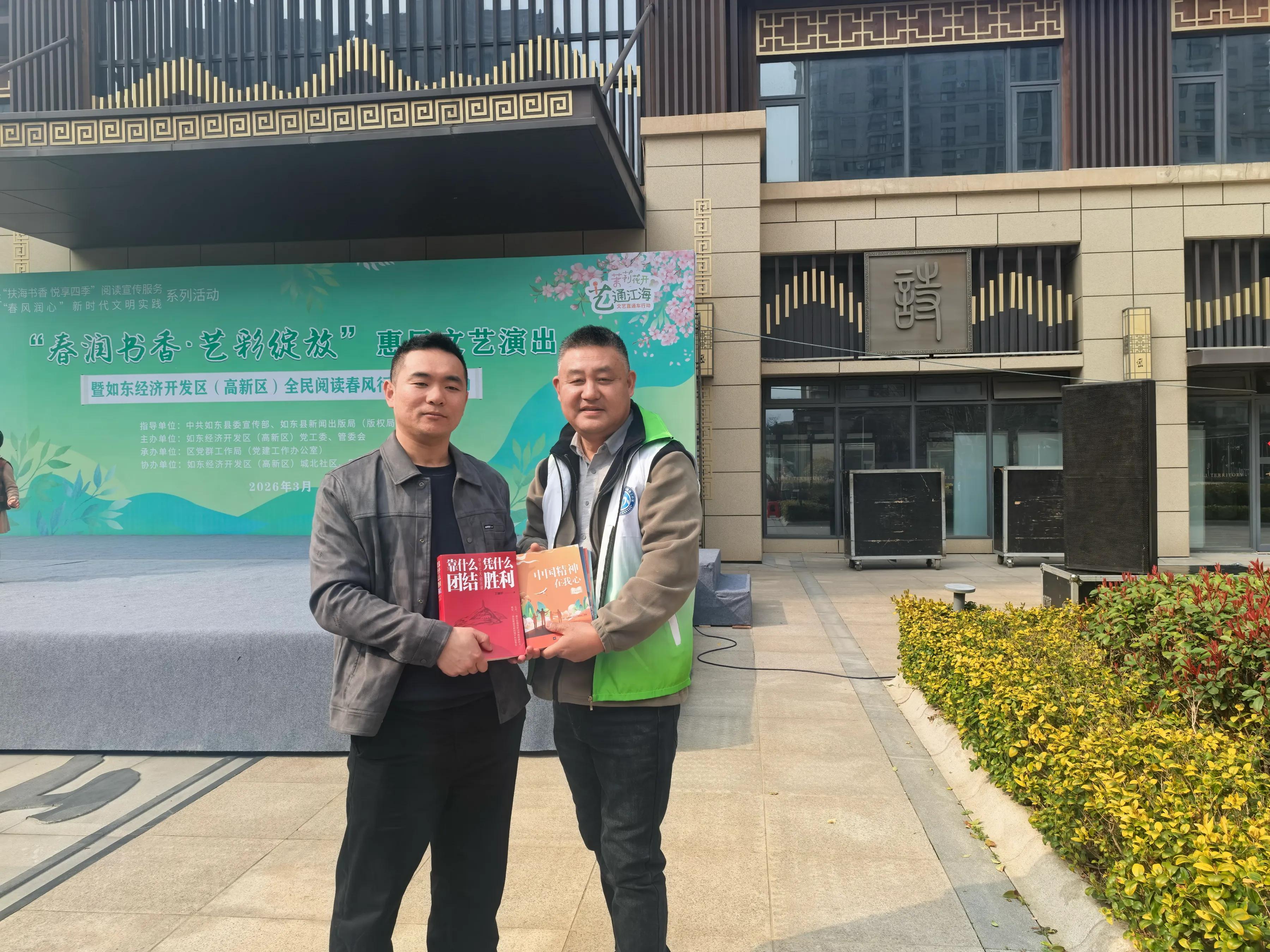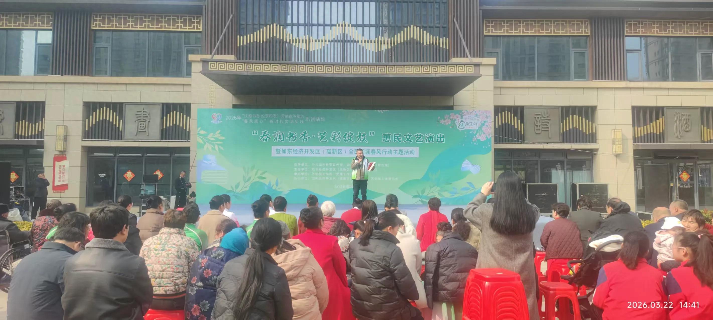 3月22日下午,由如东县委宣传部、如东县新闻出版局指导的“2026年度全民阅读春风行动”启动仪式在如东县经济开发区城北社区“十里江山”广场举行。