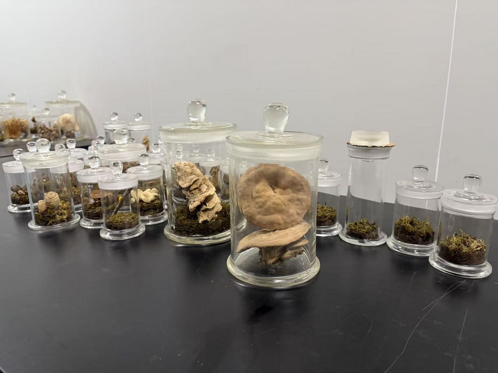 有趣的是,百余年前入藏的两株蕈菌,受当时科技水平所限,一直沿用“木芝”和“木菌”的旧称。直到去年8月,安惠科研团队通过ITS序列测序等现代分子生物学技术,才让它们的“真实身份”水落石出——“木芝”其实是变色栓菌,“木菌”则是树舌灵芝。“我们立马将名称改过来了,更加准确、科学了。”黄晨笑着补充,90年代采集的那株灵芝与“军山1号”同为赤灵芝,前者处于出芝期,后者已到成熟期。这些发现,让三批标本之间建立起了更为亲密的关联,“不仅我们的馆藏体系更加丰富,本土的菌物资源脉络也更清晰了。”