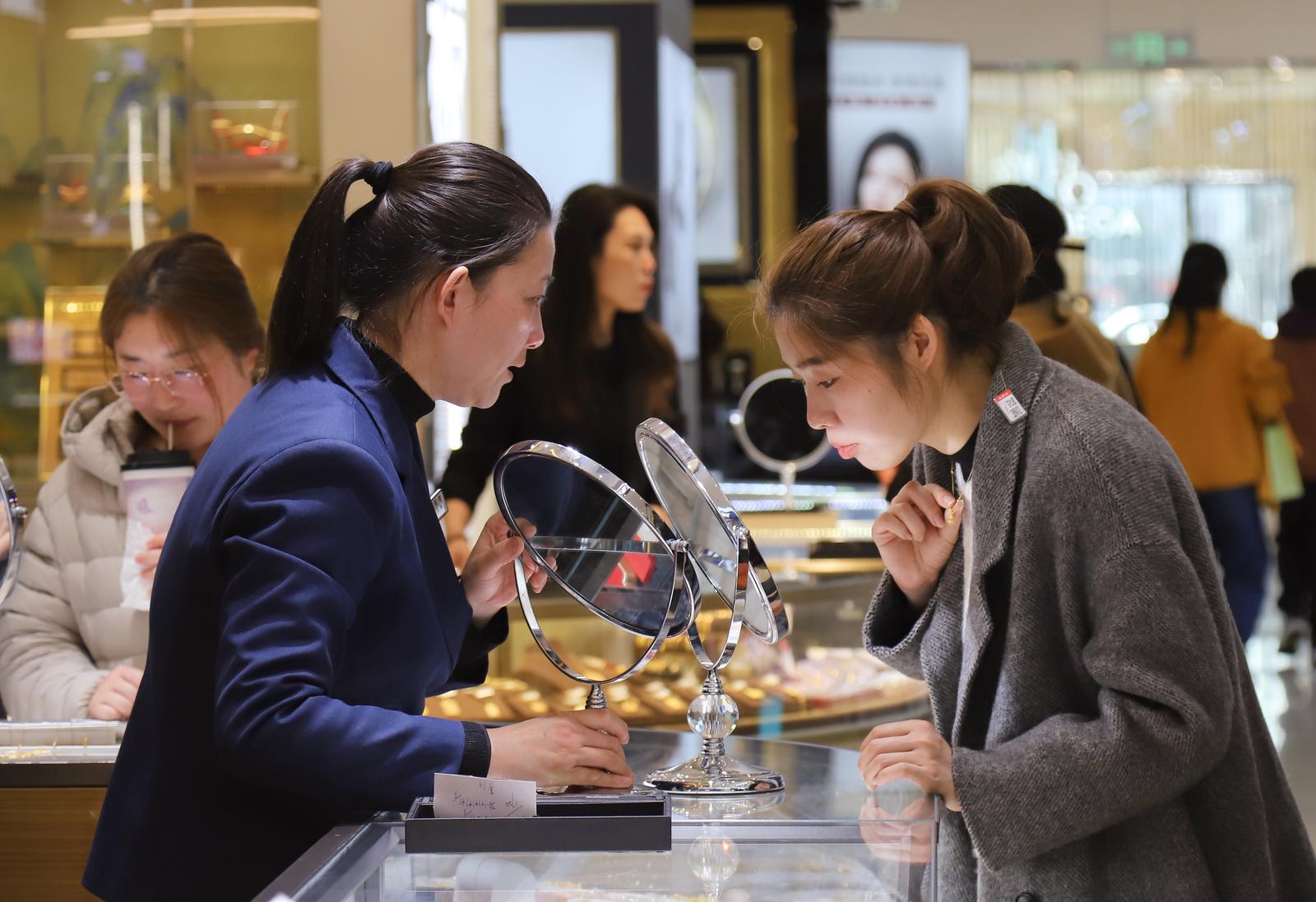 多家金店负责人反映,刚刚过去的周末,门店客流量较前一周有所增长,其中不乏专程赶来购金的消费者。市民黄女士说:“孩子准备五一假期结婚,观望了很久,趁着现在金价平稳,前来购置婚庆需要的‘五金’。”