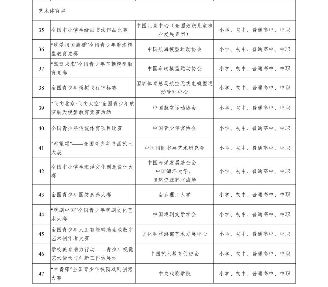 一、严控竞赛总量。严格控制面向全省中小学生开展各类竞赛活动,切实减轻中小学校、学生和家长负担。未经省教育厅批准,任何单位不得擅自组织面向中小学生的全省性竞赛活动,各地各校不得组织或动员中小学生参加不在公布名单内的各类竞赛活动。除教育部有文件要求外,原则上不以省为单位统一组织中小学生参加其他全国性的竞赛活动。