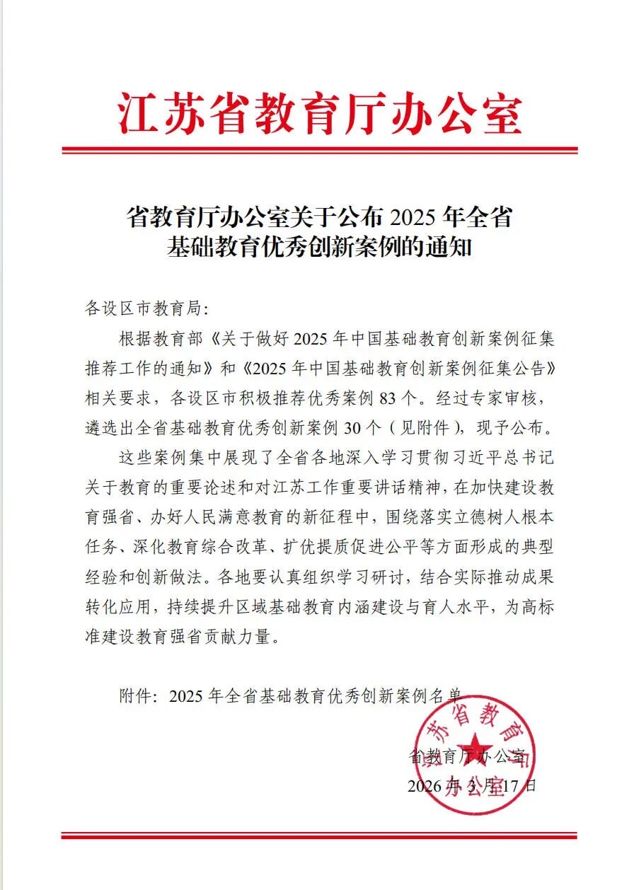 2025年全省基础教育优秀创新案例名单公布 南通4个案例入选