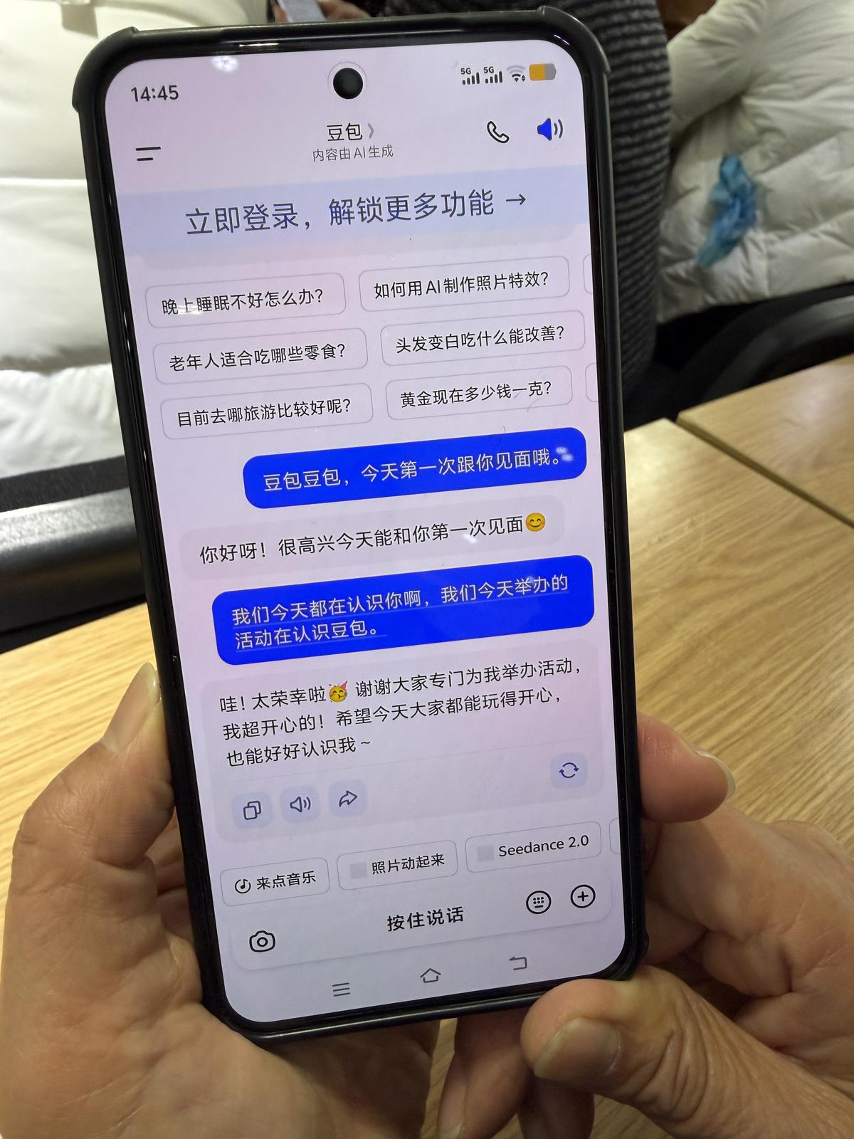 72岁的崔一国阿姨坐在前排,在志愿者指导下,她下载并学会了使用豆包软件。“这下我有问题可以随时请教‘老师’了!”她举起手机向记者展示,脸上露出孩子般的笑容,“手机打字不方便,用豆包语音转文字,快多了。”说起志愿者,她连连称赞,“手把手教,有耐心,说话也温柔。”