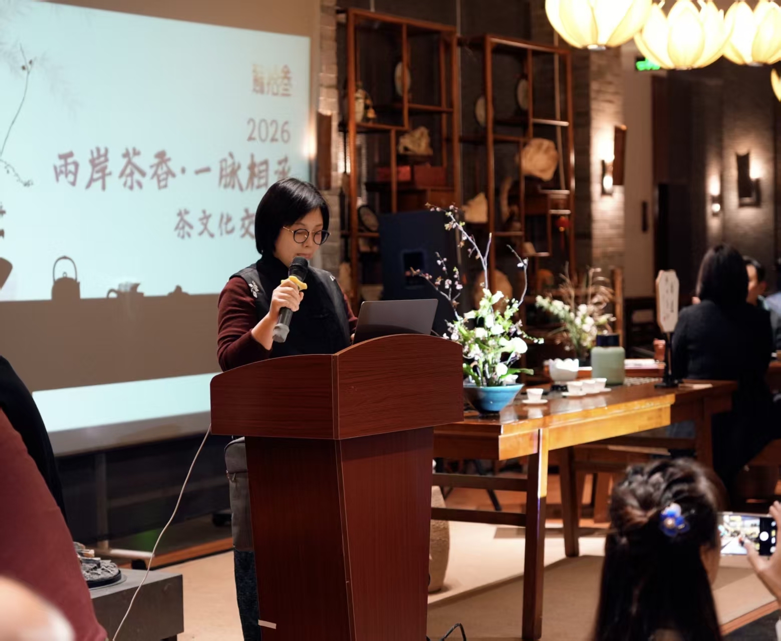活动中,南通五三美术馆、南通市茶文化推广中心主任黄晓晖登台分享。她结合南通与台湾的地域文化特色,深入剖析两地茶文化的共通特质,从江海文化与宝岛风情的交融视角,表达了南通与台湾茶界携手传承、共同弘扬中华优秀传统文化的坚定决心,其发言引发现场两岸嘉宾的强烈共鸣。