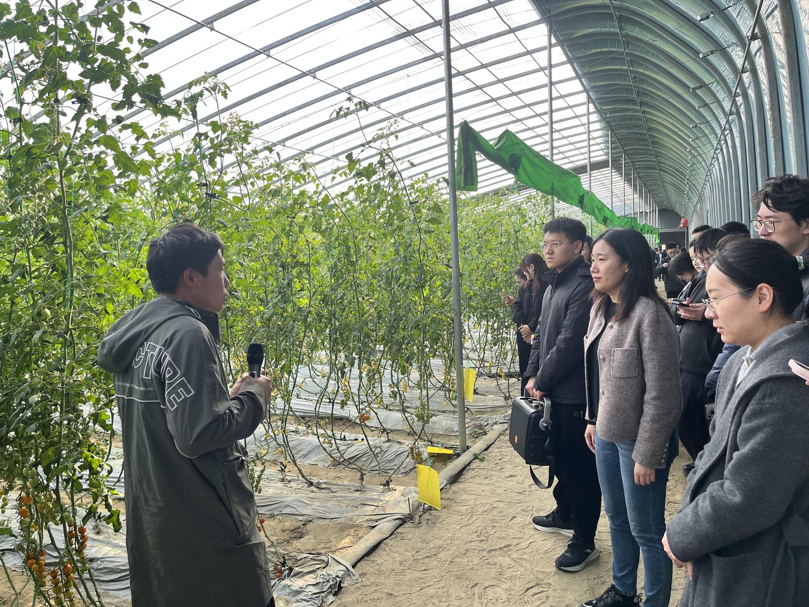 随后,大家前往海安特色农业产业园,走进番茄、车厘子等特色种植基地。大家边走边看,详细了解园区如何依托本地资源禀赋,走出一条规模化的乡村特色农业发展之路。高效的种植模式、喜人的丰收景象,让青年们直观感受到乡村产业振兴的蓬勃活力。