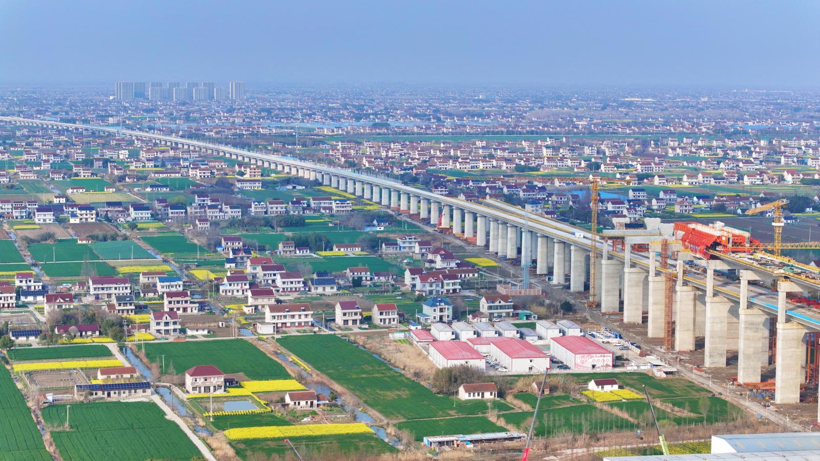 崇启公铁长江大桥建设正酣,合龙冲刺“百米之遥”。截至26日,工程总进度已达86%,主桥合龙进入百米冲刺倒计时。斜拉索挂设、桥板钢筋焊接等施工作业有序推进。金黄油菜田簇拥之中,大型机械轰鸣作响,施工现场热火朝天。全线1000余名建设者奋战在关键点位,全力冲刺4月初主桥第五节钢梁吊装节点。崇启公铁长江大桥是南通“八龙过江”格局中的“第六龙”,是上海至南京至合肥高铁控制性节点工程,全长4.09公里,横跨长江入海口北支航道。