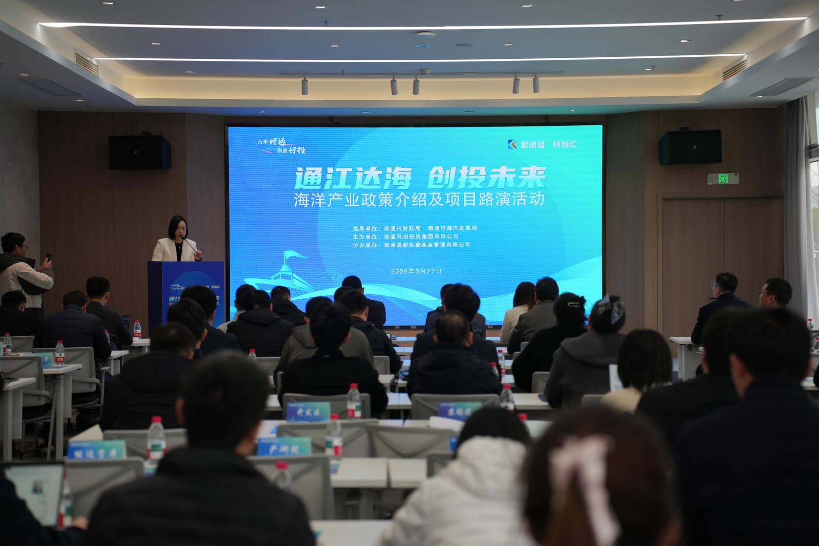 3月27日下午,在市财政局、市海洋发展局指导下,南通科创投资集团主办的“通江达海·创投未来”海洋产业政策介绍及项目路演活动举行。政府部门、投资机构与项目方代表齐聚紫琅创新谷,以海洋为纽带、以政策为支撑、以资本为桥梁,共探产业发展新机遇、共绘海洋经济新蓝图。