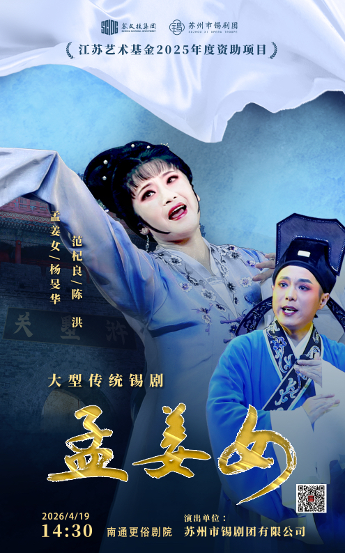 记者近日从南通更俗剧院获悉,由苏州市锡剧团打造的大型传统锡剧《孟姜女》将于4月19日下午在更俗剧院演出。作为江苏艺术基金2025年度资助项目,该剧此番亮相通城,旨在为戏迷朋友呈现一场原汁原味、感人至深的经典戏曲盛宴。