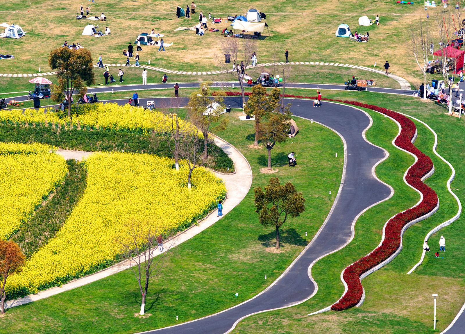 滨江花海是南通狼山国家森林公园生态修复的重要组成部分,作为南通五山地区滨江片区,随着港口码头整体搬迁,经过多年的生态修复,五山”及沿江地区实现了从“临江”到“滨江”、从工业“锈带”到生态“秀带”的蝶变。