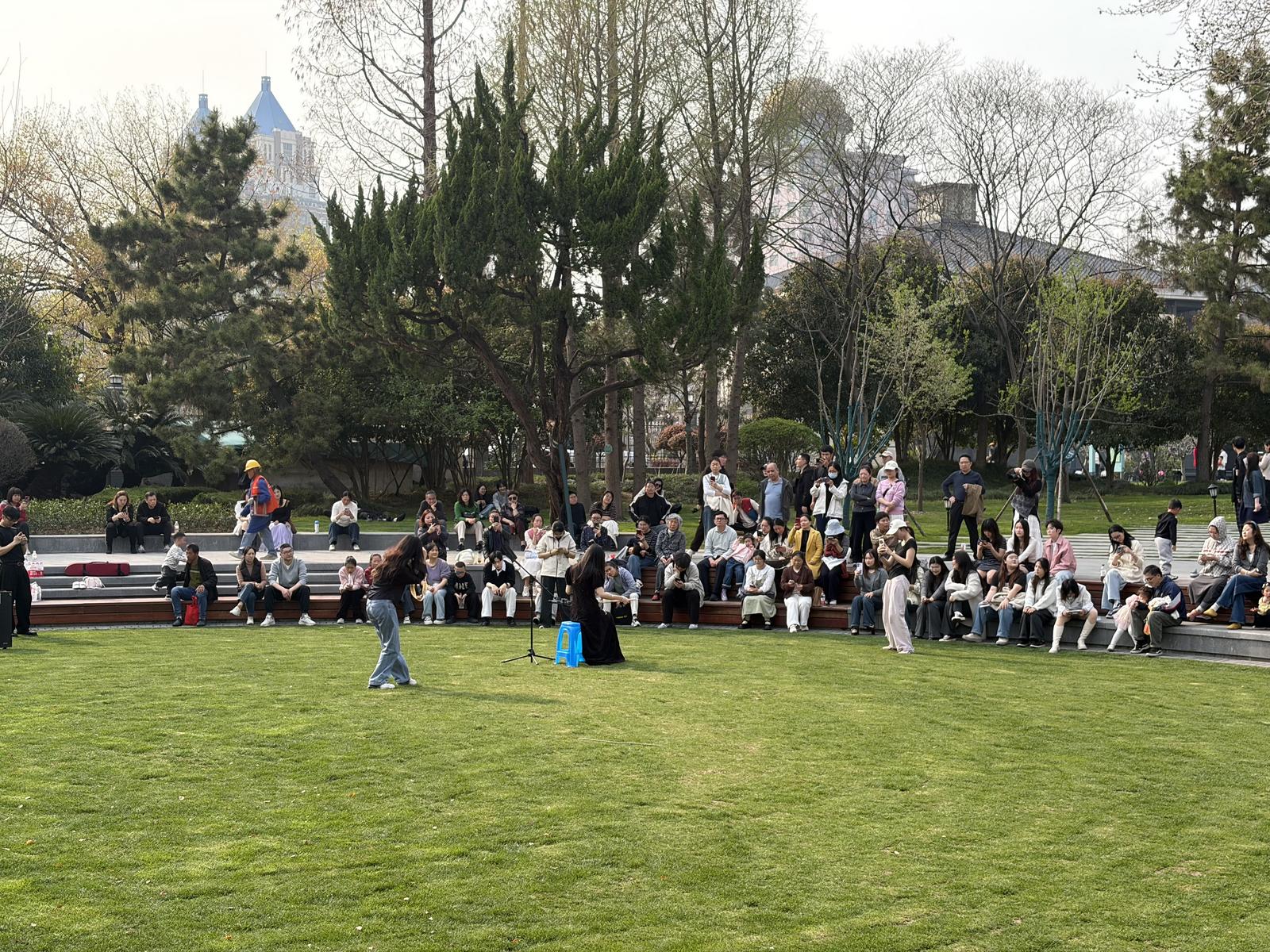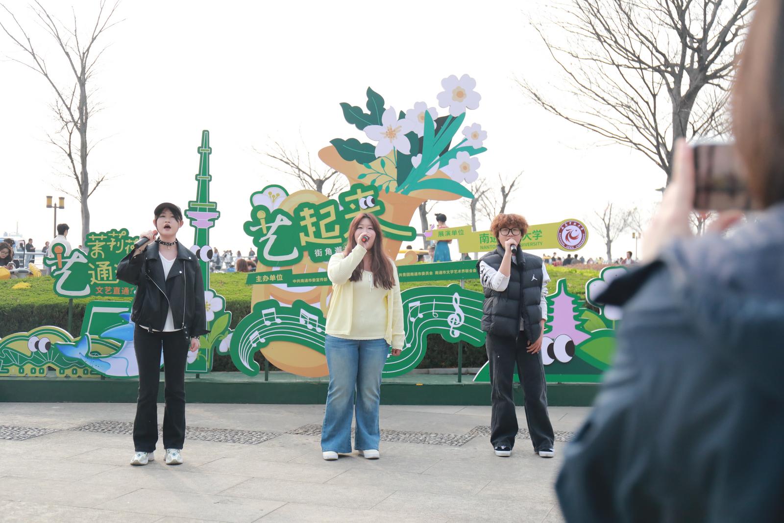 今年首次加入演出点位矩阵的南通博物苑里,艺术与百年园林“撞了个满怀”。南通大学艺术学院将舞台搬进草木与花影间,青砖不语,琴音绕梁。《赛马》在草坪上掀起热浪,《美丽的神话》在石阶旁低诉衷肠。从《青玉案·元夕》的古韵到《雨爱》的深情,从《简单爱》的清新到《梨花又开放》的唯美,每一首歌都像是一封写给春天的情书。观众们或倚靠在老树下,聆听艺术与时空的对话,或站上草坪舞台,与歌手同台演唱,共同奏响春日乐章。