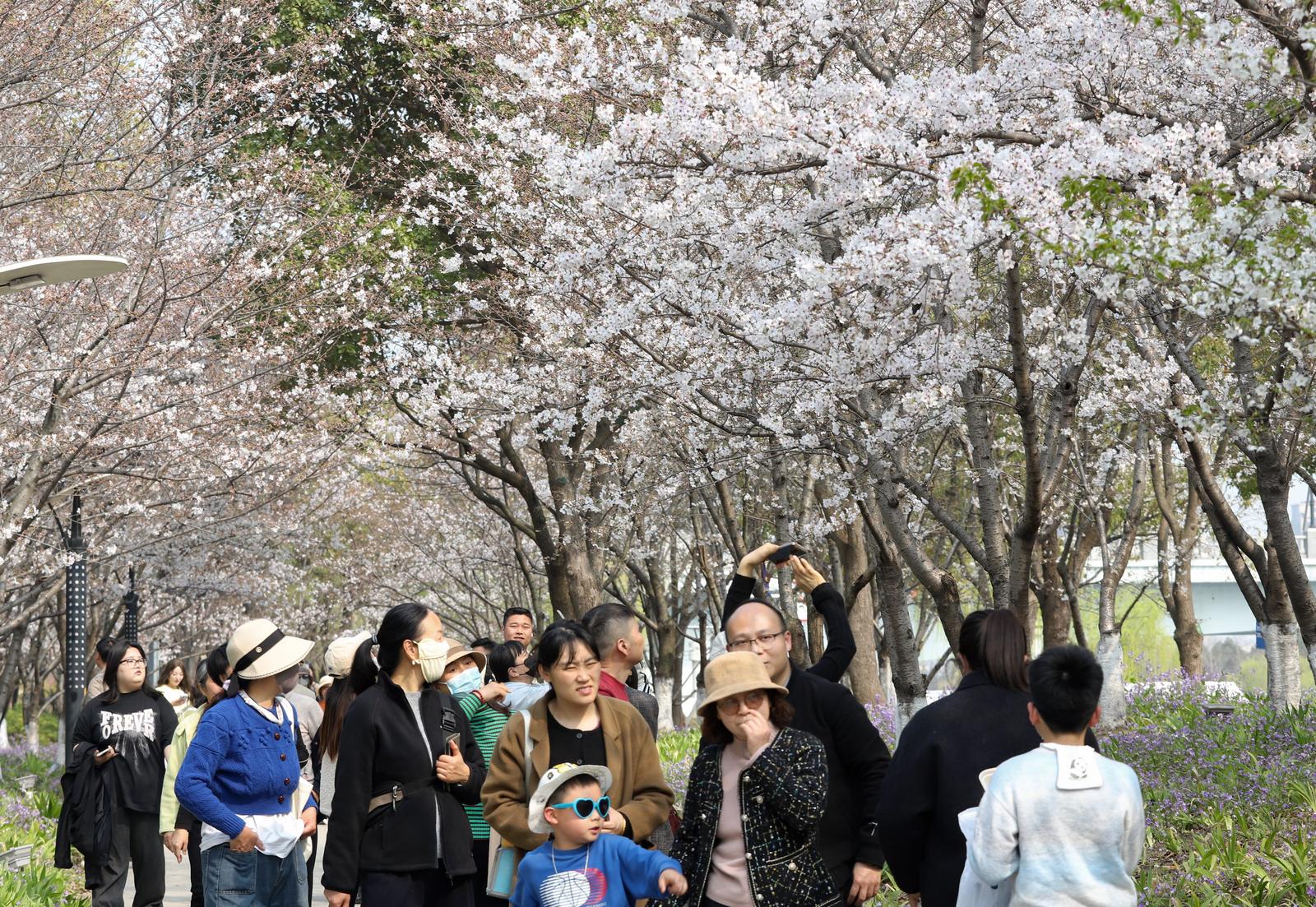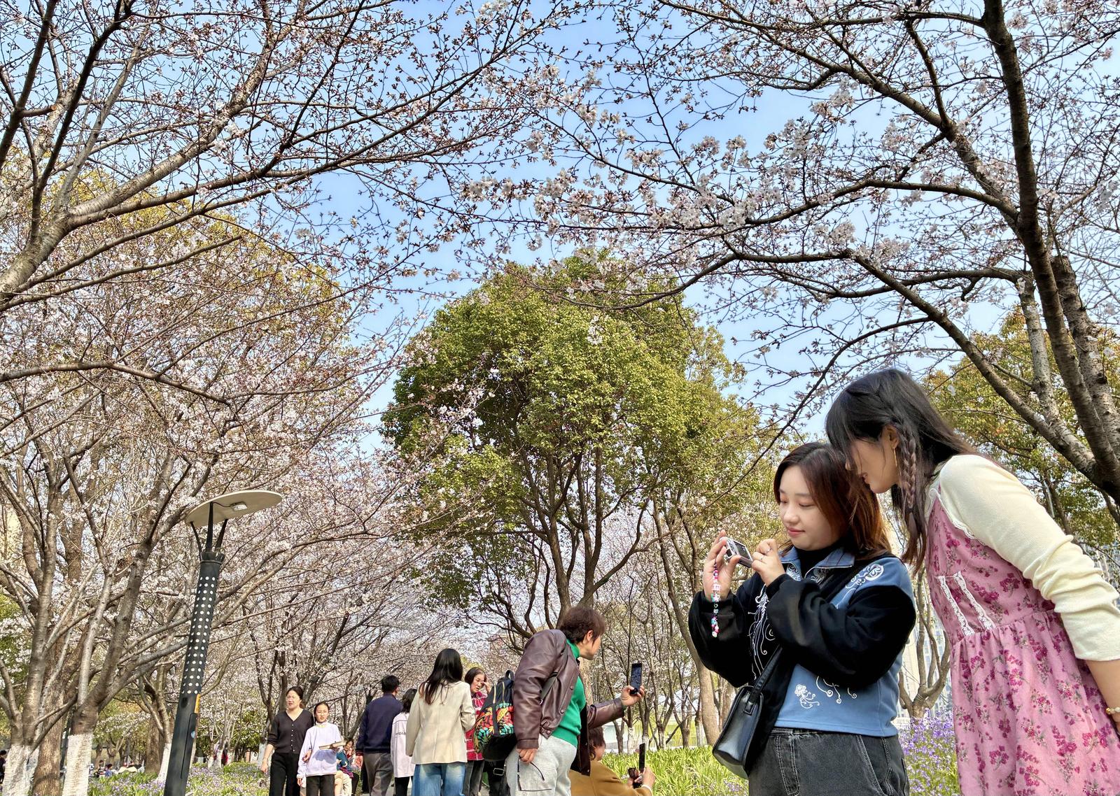 樱缀运河岸 春满南通城 | 通吕运河北岸樱花盛放引市民打卡