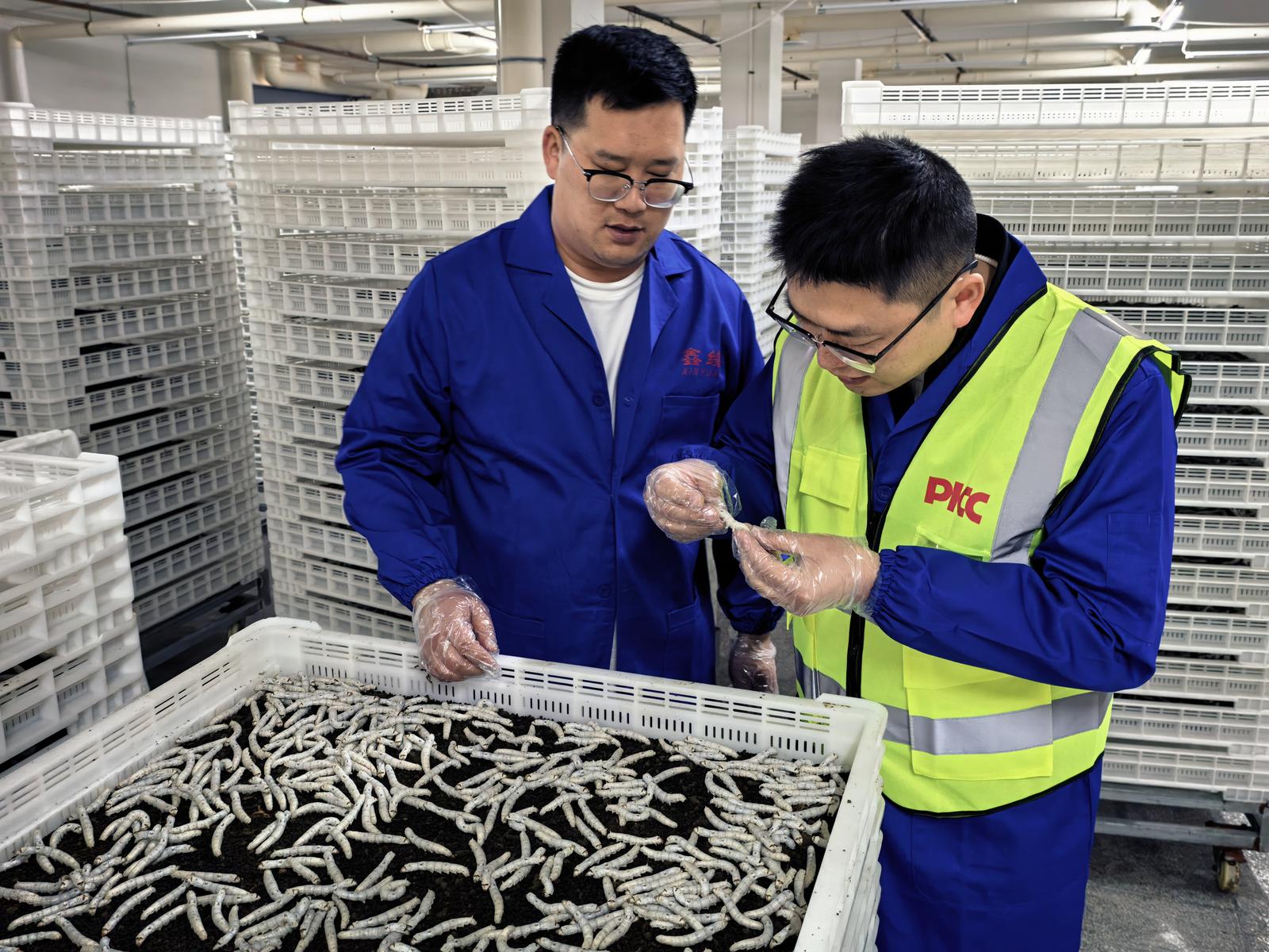 2025年起,海安茧丝绸产业迎来关键突破。当地茧丝绸龙头企业——鑫缘丝绸创新研发工厂化养殖“适龄转桑”模式,以饲料替代传统桑叶,成功打破季节、气候及桑园用药的限制,帮助蚕农实现“四季养蚕”的梦想,为产业规模化、现代化发展按下了“加速键”。