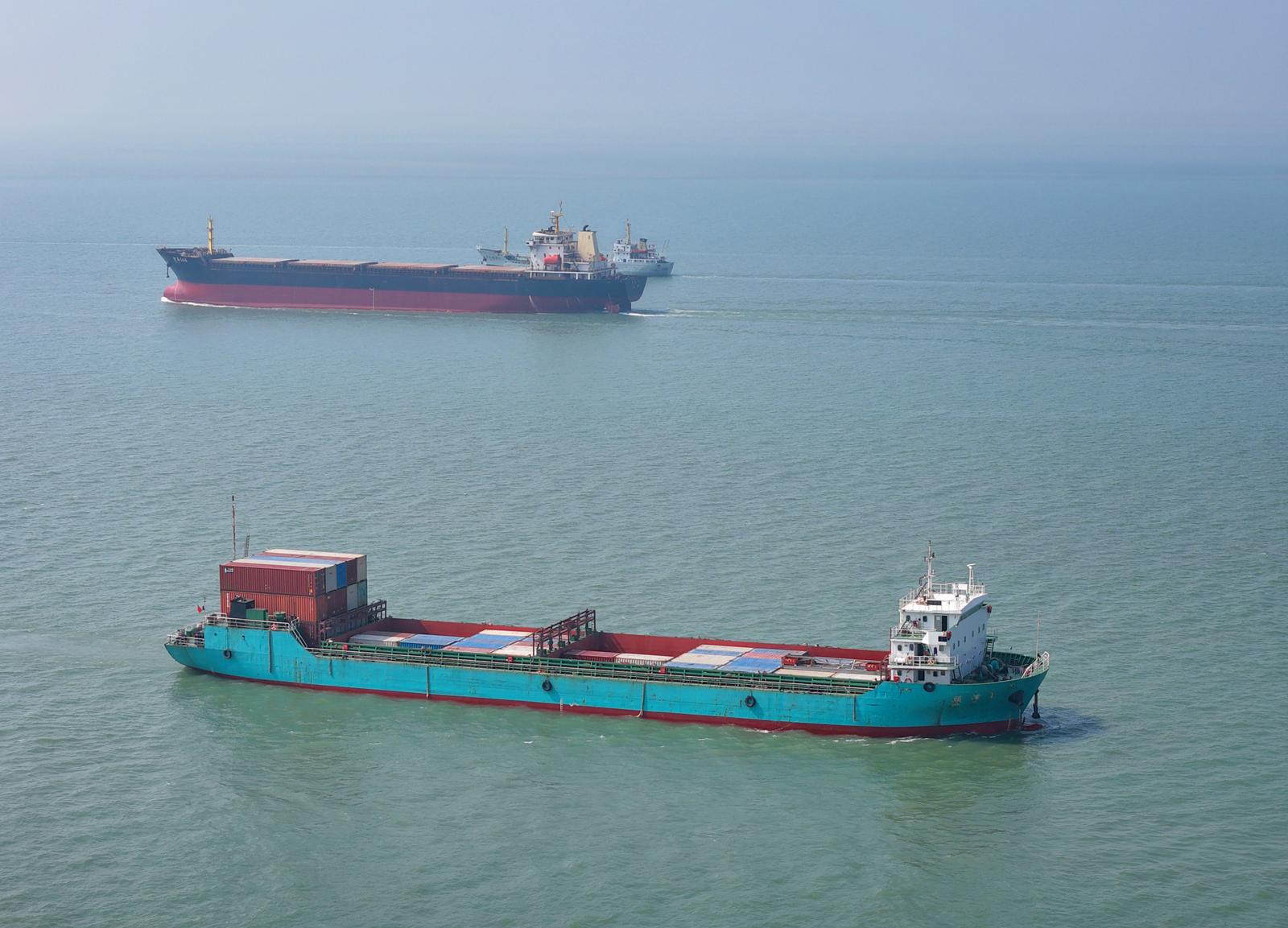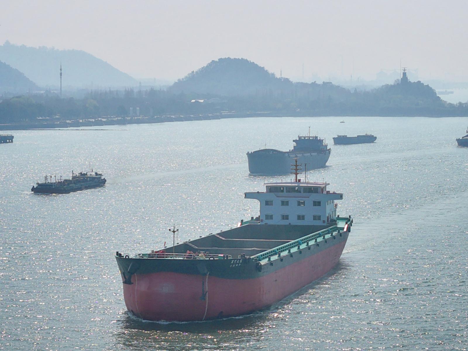 2026年3月29日在长江南通段江面上拍摄的众多船舶。长江上往来货船有序航行,一片繁忙的景象。 据悉,“十四五”期间,长江干线航道条件持续改善,亿吨大港从12个增加至18个,万吨级生产性泊位由360个增至487个。