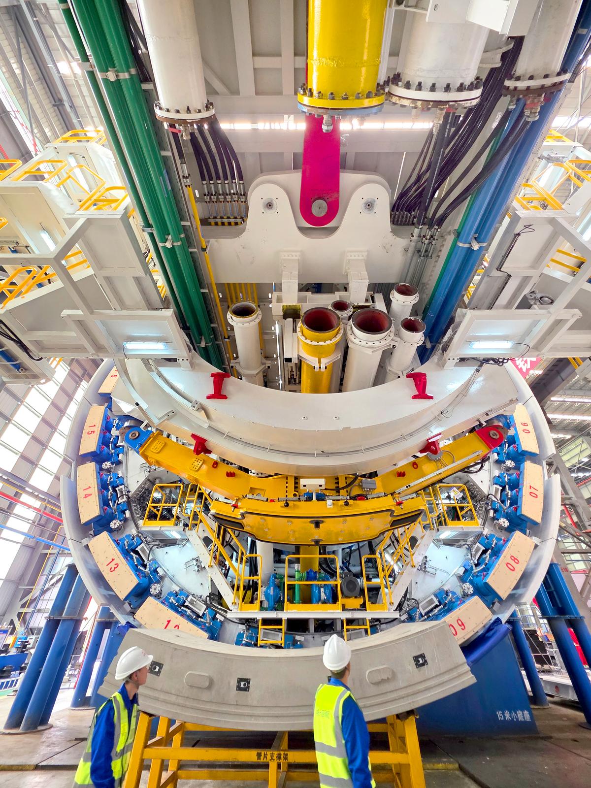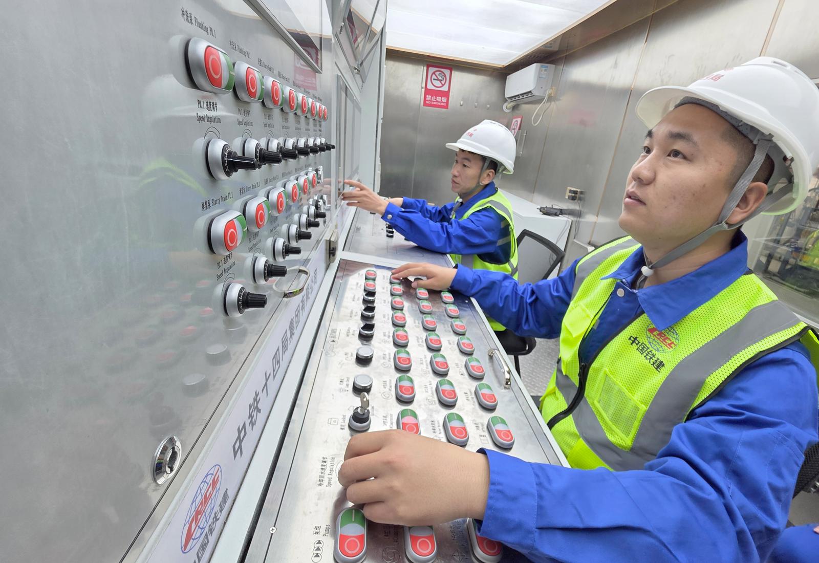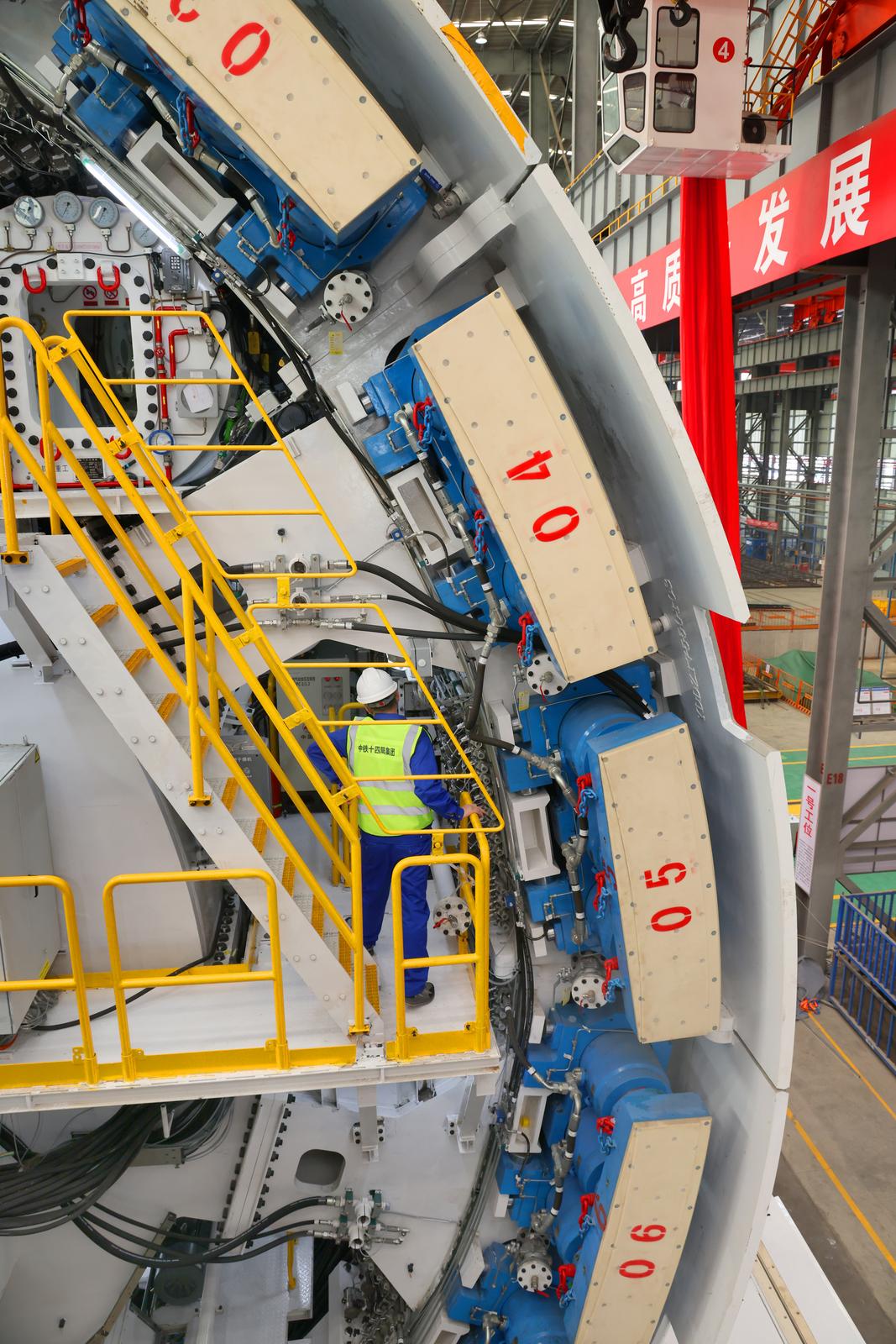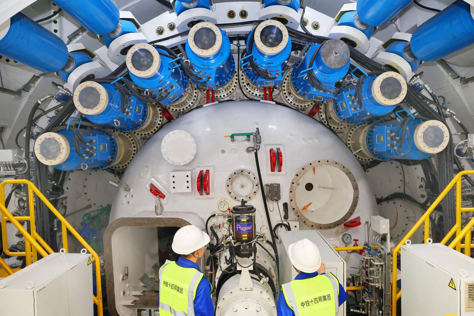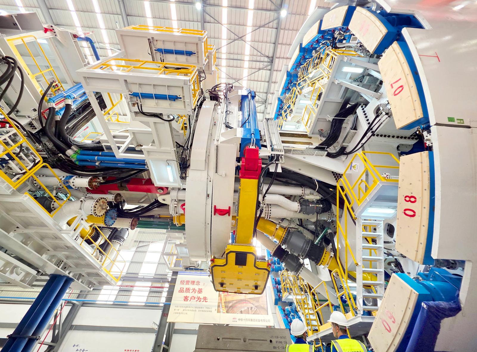 “奋楫号”盾构机整机全长145米,总重约3800吨,刀盘开挖直径14.33米,集成多项智能化装置,具备远程驾驶掘进,关键部件实时监测,管片、箱涵智能拼装等功能,实现隧道主体和内部结构一次成型。