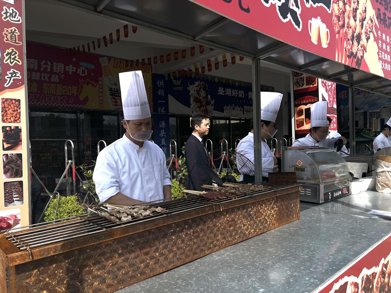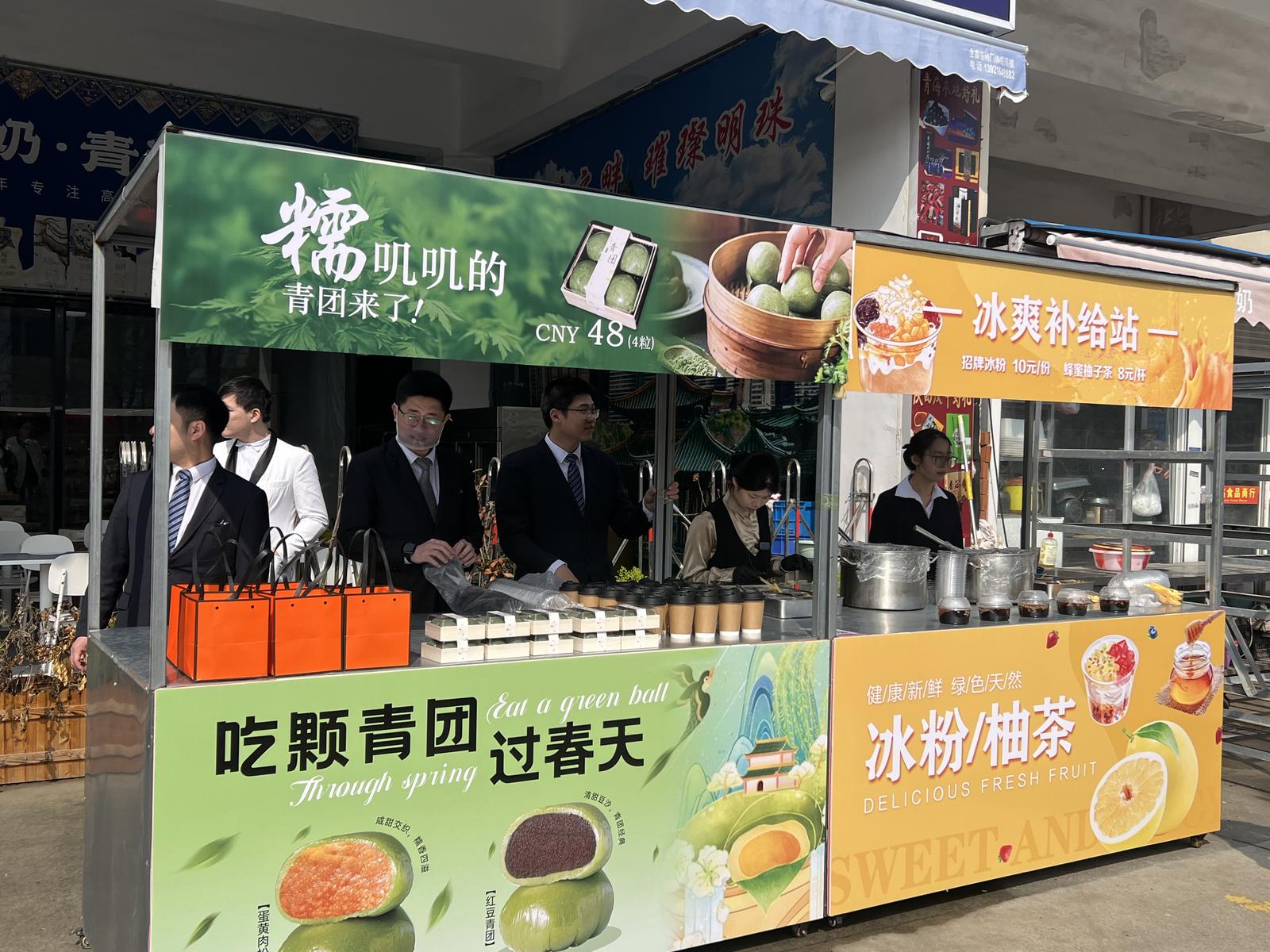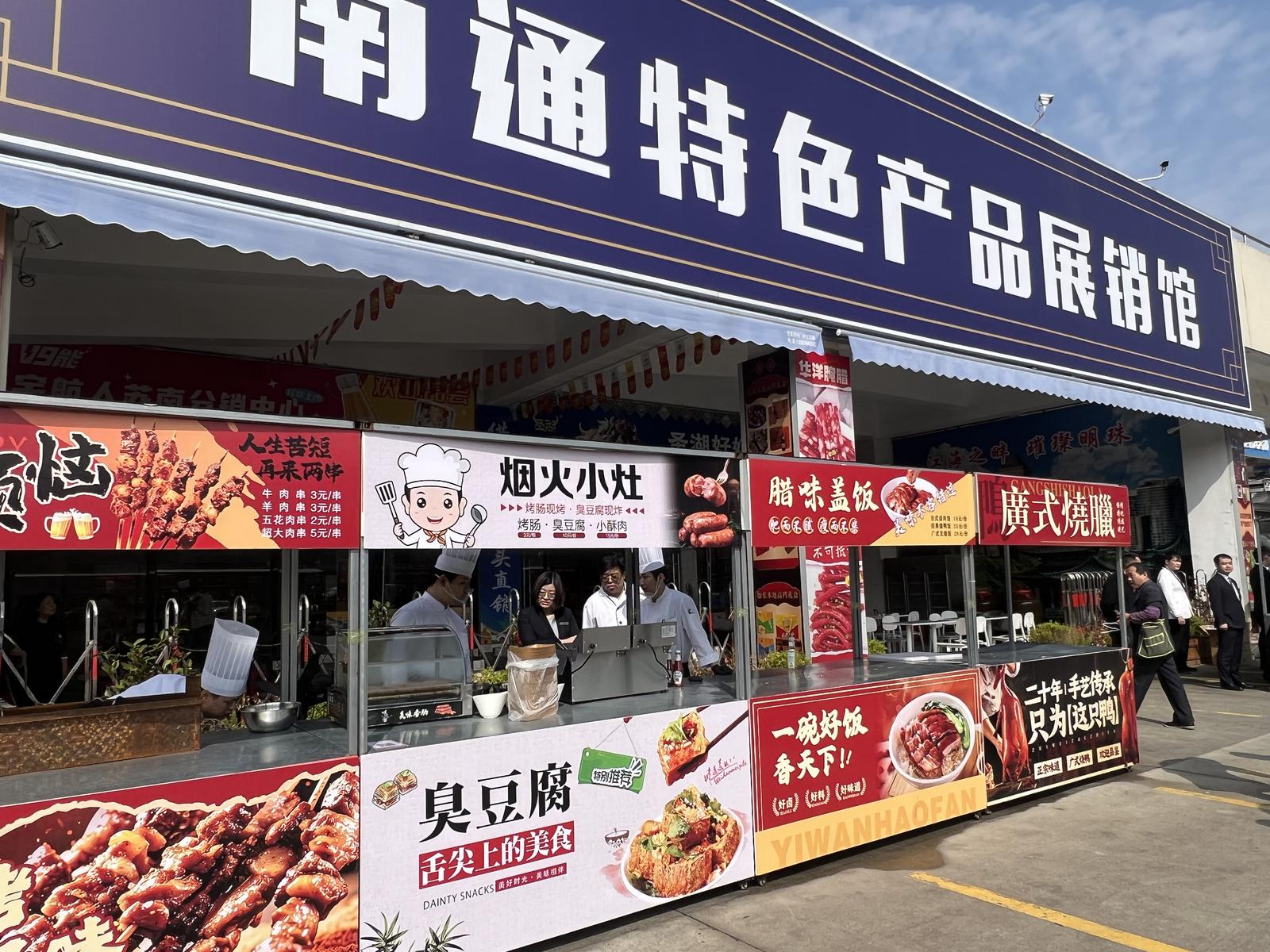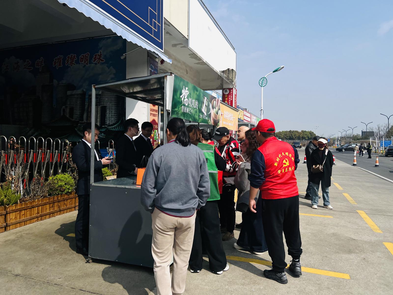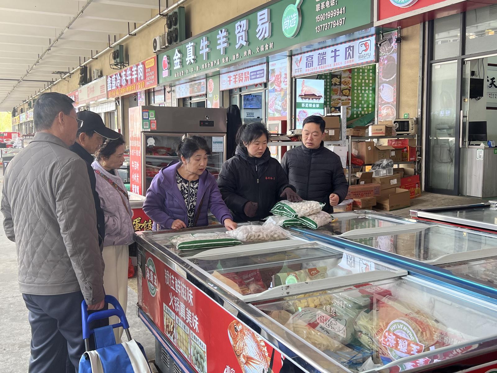 为更好地迎接游客,沪蔬通公司采取了一系列暖心举措:提前提醒商户备足货物,尤其是物美价廉的牛羊肉等特色产品;在市场周边显著交通要道张贴指引标识,方便不熟悉市场的消费者顺利采购。市场内还特别设置南通特色产品展销馆,现场活跃着身穿红马甲的志愿者,热情地为游客提供帮助。当天,金石国际大酒店也进入市场设摊,提供青团、烧烤、小食、腊味盖饭、冷饮甜品等丰富餐品,解决了游客的用餐问题,让采购之旅更加便捷舒适。