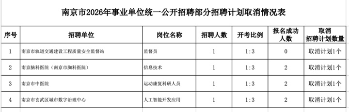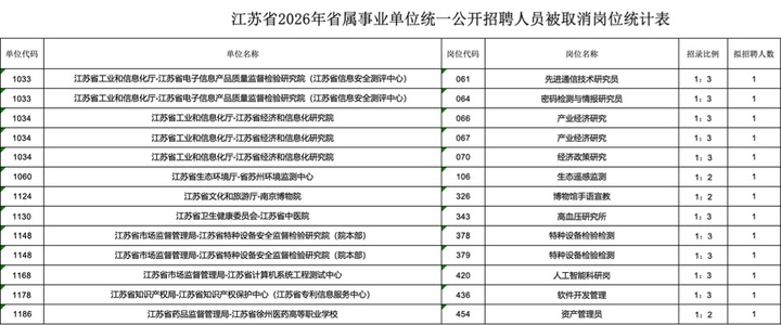 江苏部分事业单位招聘岗位被取消,具体岗位看这里