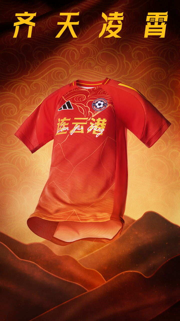 客场霞披如火,这一抹炽热的红,取意以神话中的“斗云”。它寓意着球队如大圣般穿云破雾,以不可阻挡的锋芒撕开对手防线,奋勇争先。