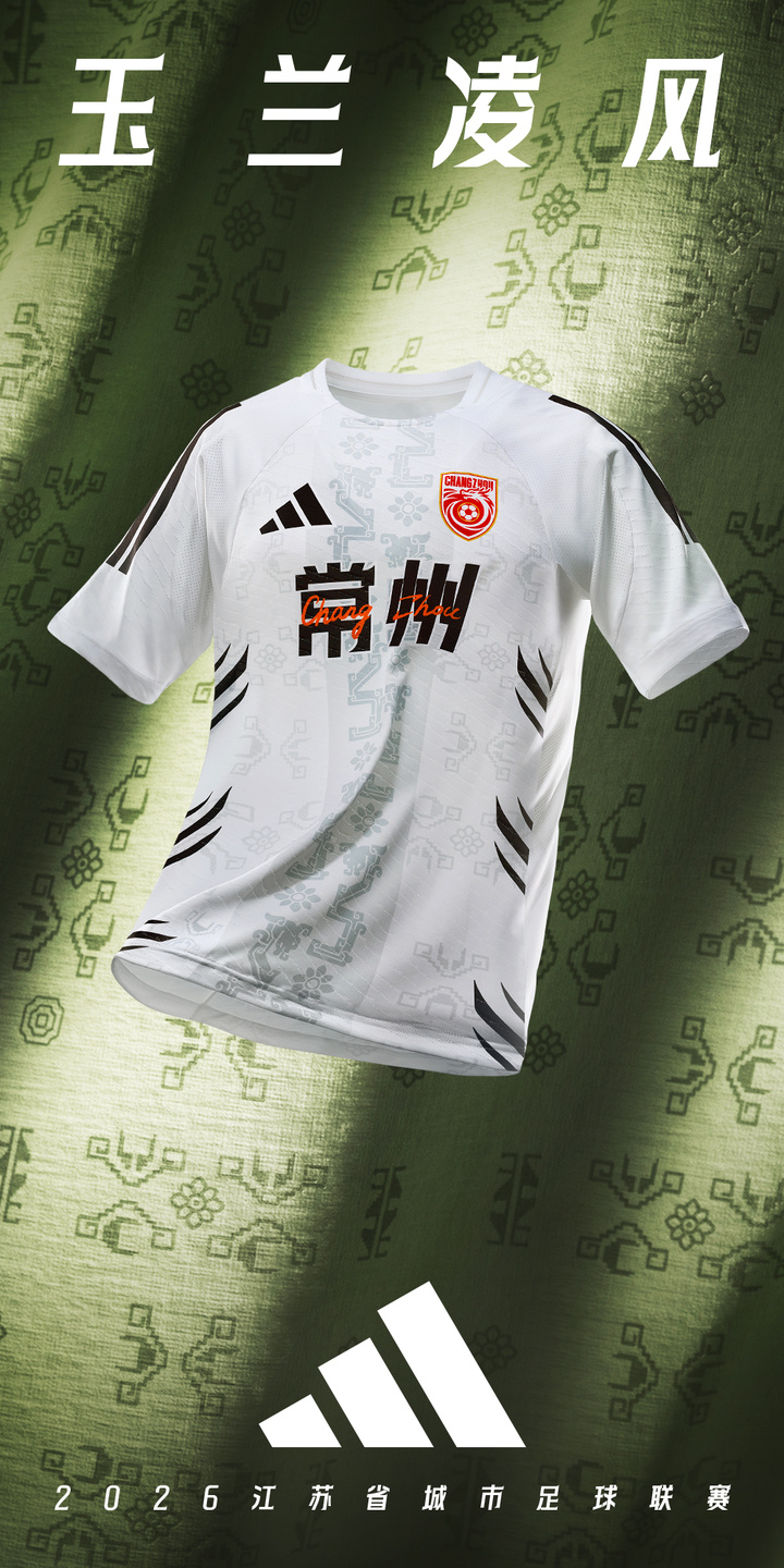 对外锋芒竞绽,向内激励蓄势,常州古城墙与广玉兰花姿化身客场球衣上的几何暗纹,折射足球攻守相成、进退有度的竞技之道。
