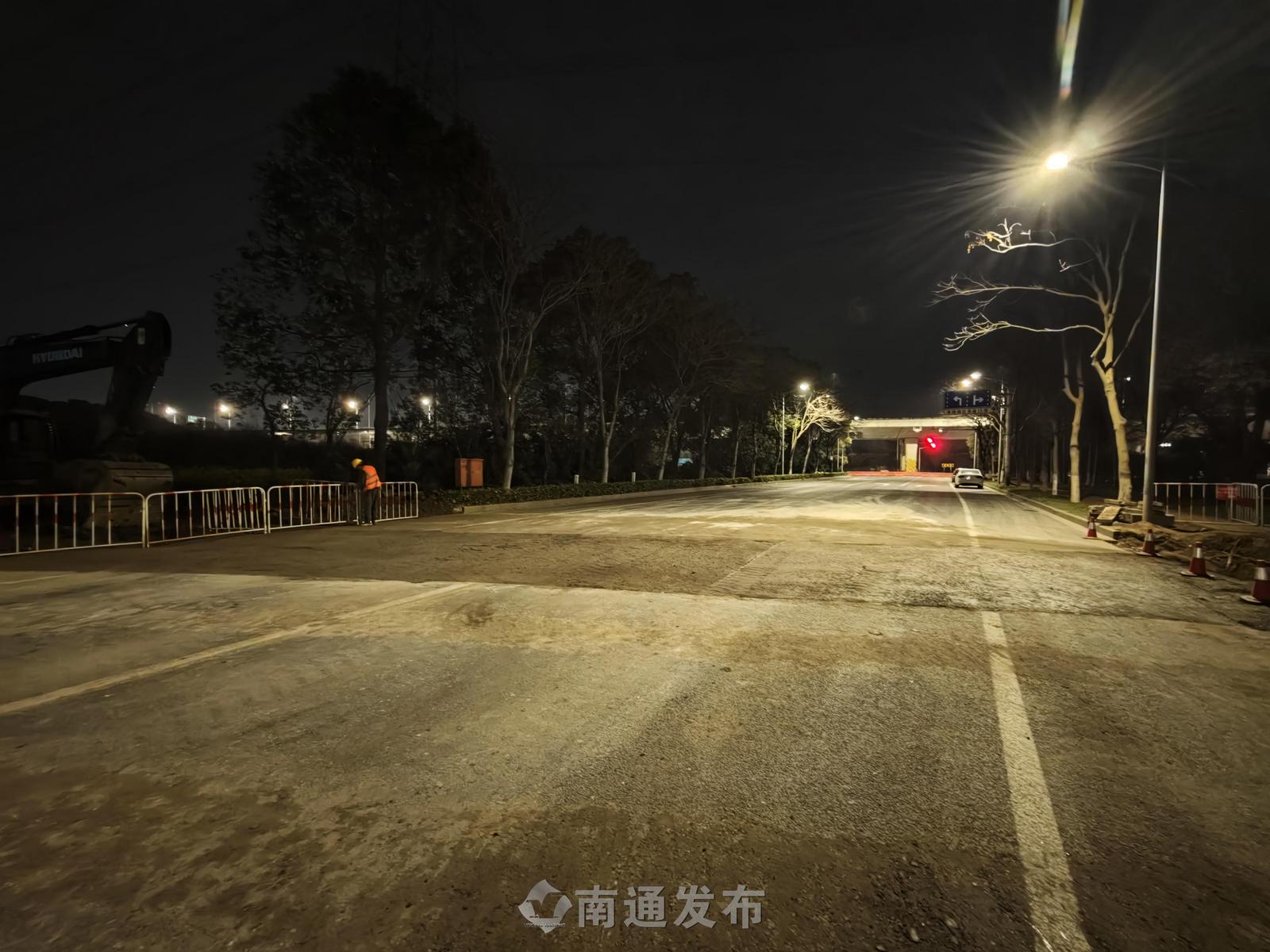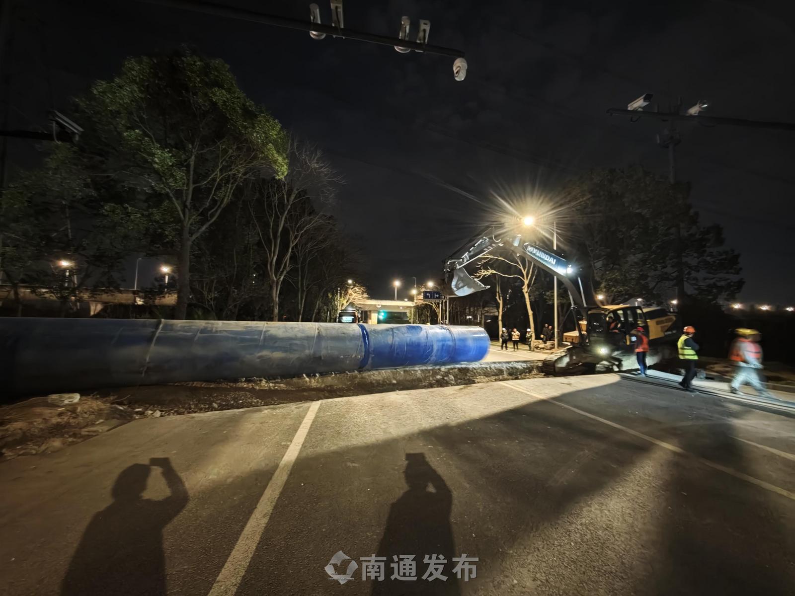 夜间错峰攻坚!南通区域供水通汇线改造完成首个封路节点施工