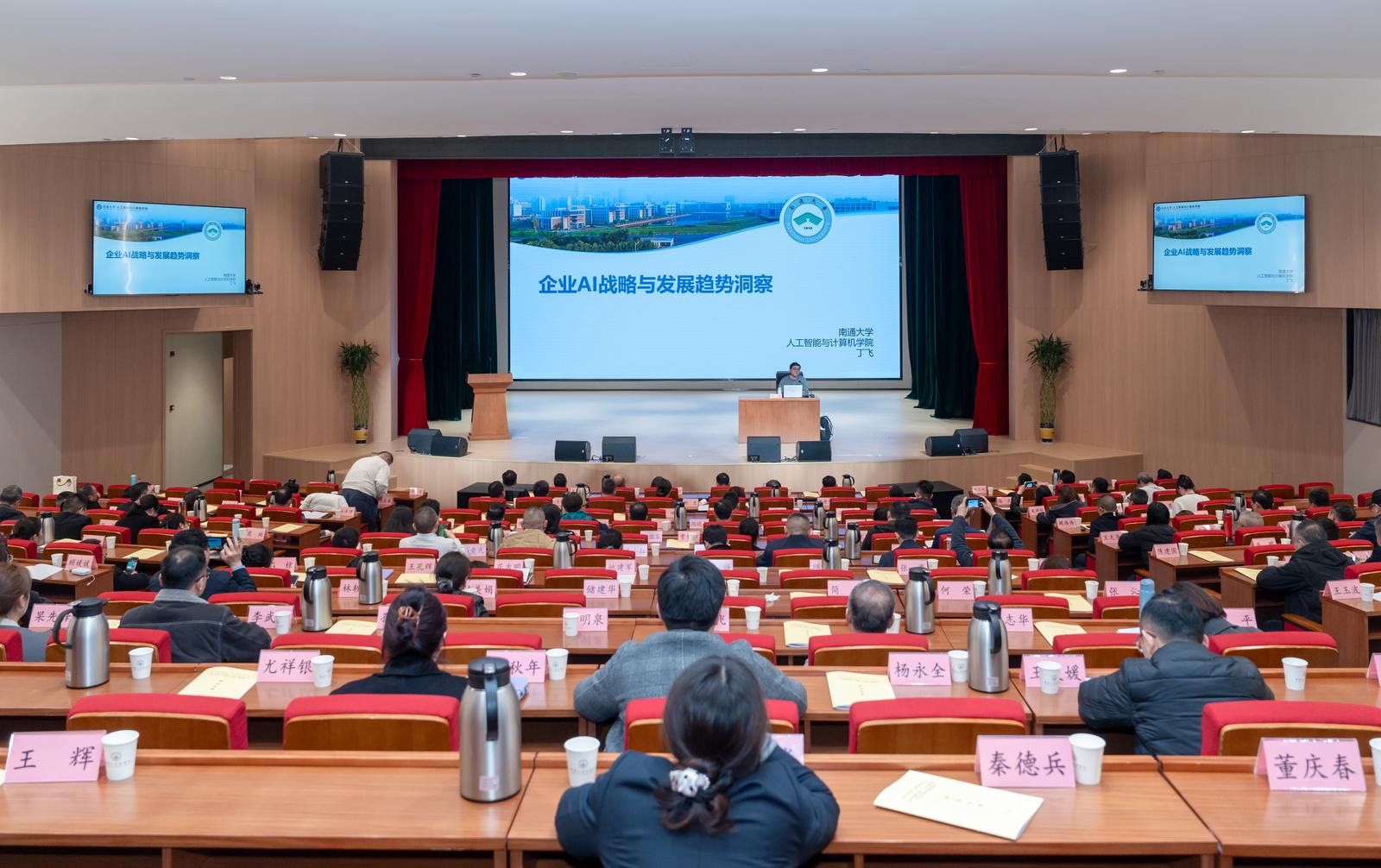 现场,两位深耕产业创新的崇川优秀青年企业家带来了AI应用的实战经验分享。江苏东升科技有限公司董事长吴家伟,结合融远智行无人车项目,详解了企业AI场景化应用经验;江苏中业信息科技有限公司董事长李志飞,分享了人工智能实践及大模型应用场景开发的探索。为帮助企业家厘清AI战略技术应用思路,培训还特别邀请南通大学人工智能与计算机学院人工智能系副主任、人工智能专业博士丁飞带来《企业AI战略技术及应用》专题授课。