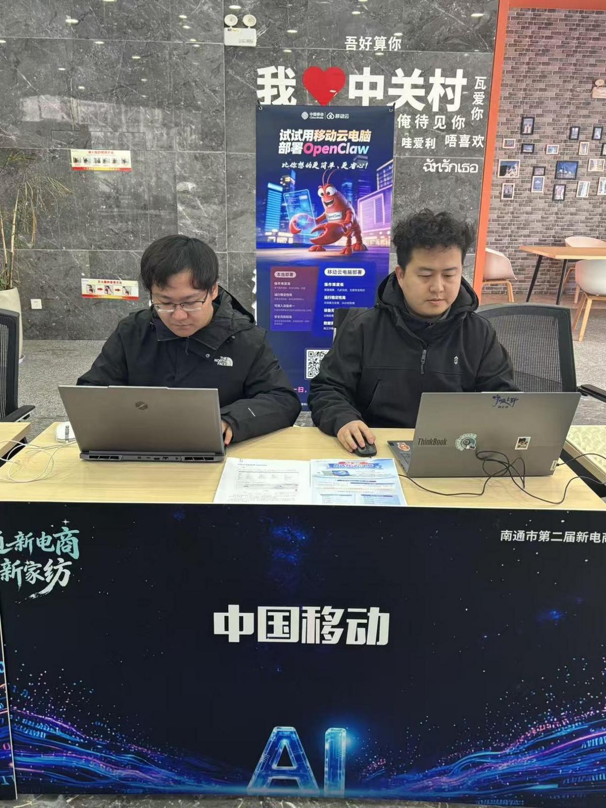 练好“内功”强根基,筑牢对外赋能硬实力。在内部OpenClaw专题培训中,南通移动聚焦“龙虾”安装、实操使用等核心内容开展系统教学,为员工答疑解惑,做到“人人有龙虾,人人用龙虾”。在南通第二届新电商发展大会现场,南通移动为参会人员免费安装OpenClaw,让新电商从业者零距离体验AI技术带来的便捷与高效,助力行业数字化提质升级。