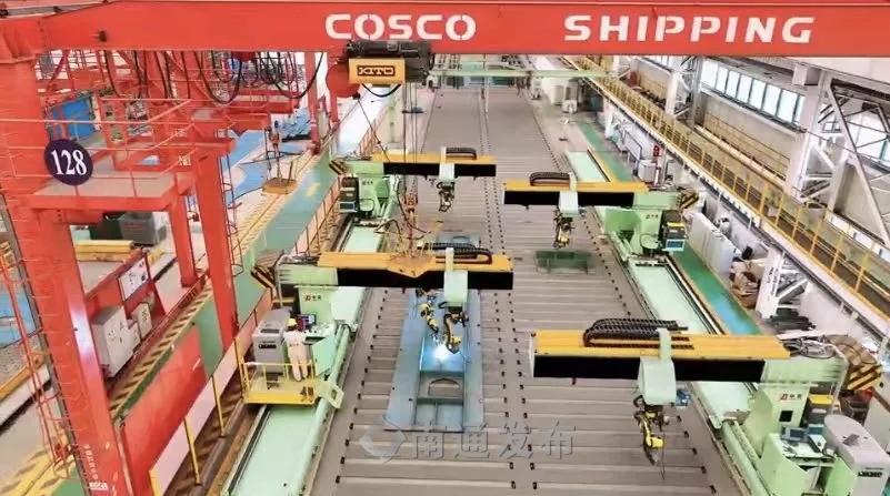 在启东中远海工车间,人机协同已成为生产常态。型材切割、条材切割等环节,智能化生产线仅需1人值守,而传统生产线则需七八名工人协同操作。目前,企业已有4台便携式机器人在岗,计划3年内增至30台,同时正打造“超强大脑”,通过AI整合人员、物资、设备等生产要素,精准测算最优生产流程。在车间面积、码头岸线未增加的情况下,得益于数智化升级,企业去年营业收入同比增长8.15%,经营利润实现大幅提升。